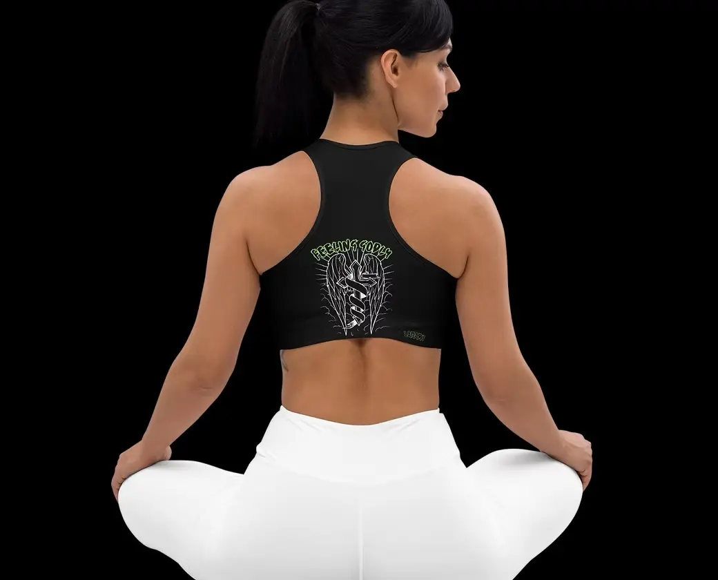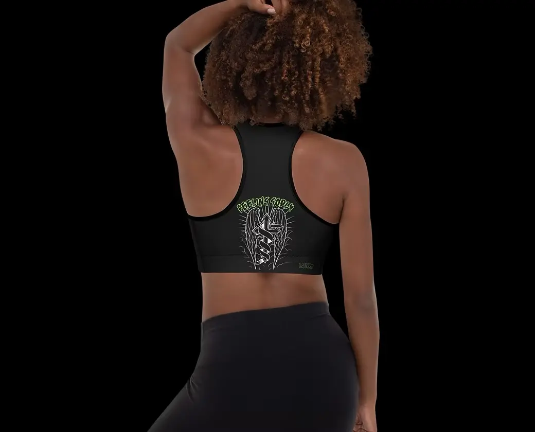 Get the perfect bra for your workouts! This comfy bra has a soft moisture-wicking fabric, extra materials in shoulder straps, and removable padding for maximum support.