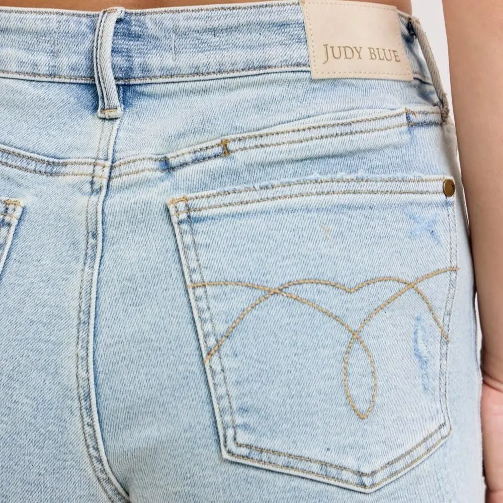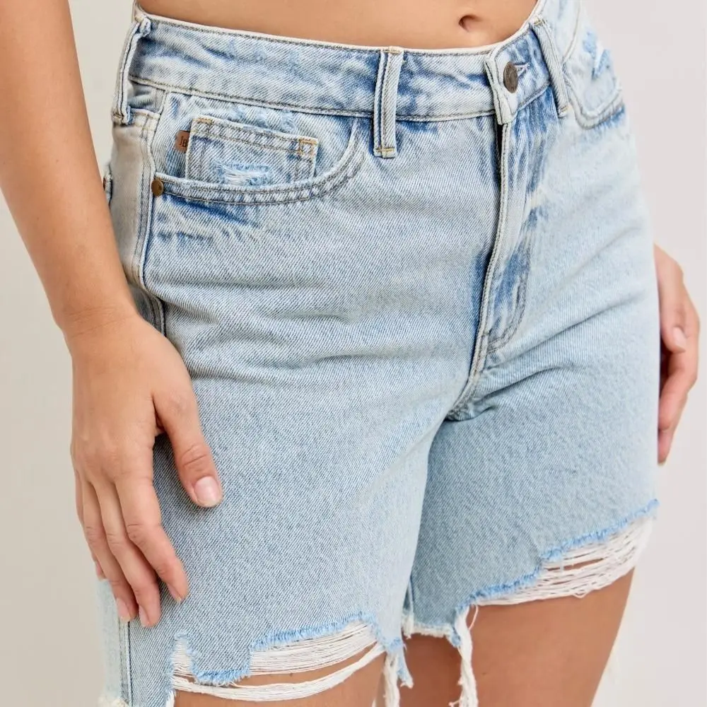 These High-Waisted Rigid Magic Dad Shorts feature a high-rise fit and rigid magic denim for structure and comfort. Designed with functional cell phone back pockets, they combine practicality with a classic relaxed silhouette, perfect for casual everyday wear.