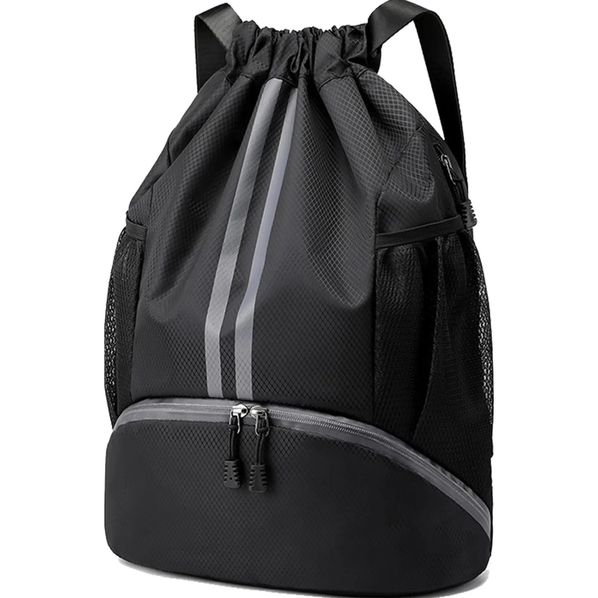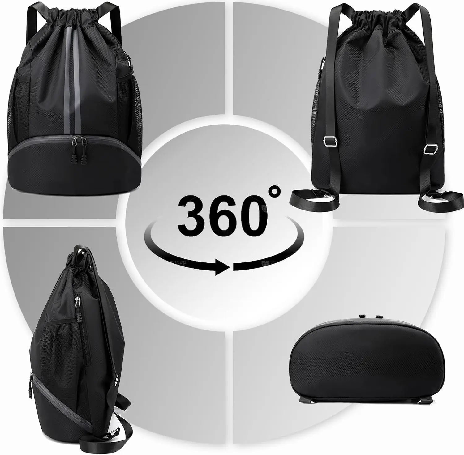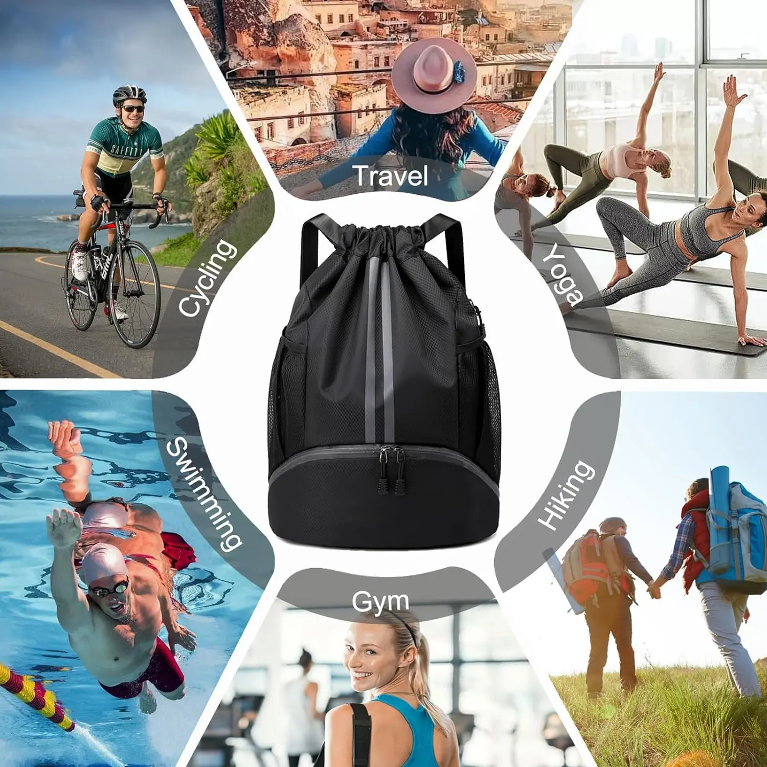 Sports Drawstring Backpack With Waterproof Material, Shoes Compartment, And Wet Proof Pocket For Gym, Swim, And Daily Use, Suitable For Men And Women