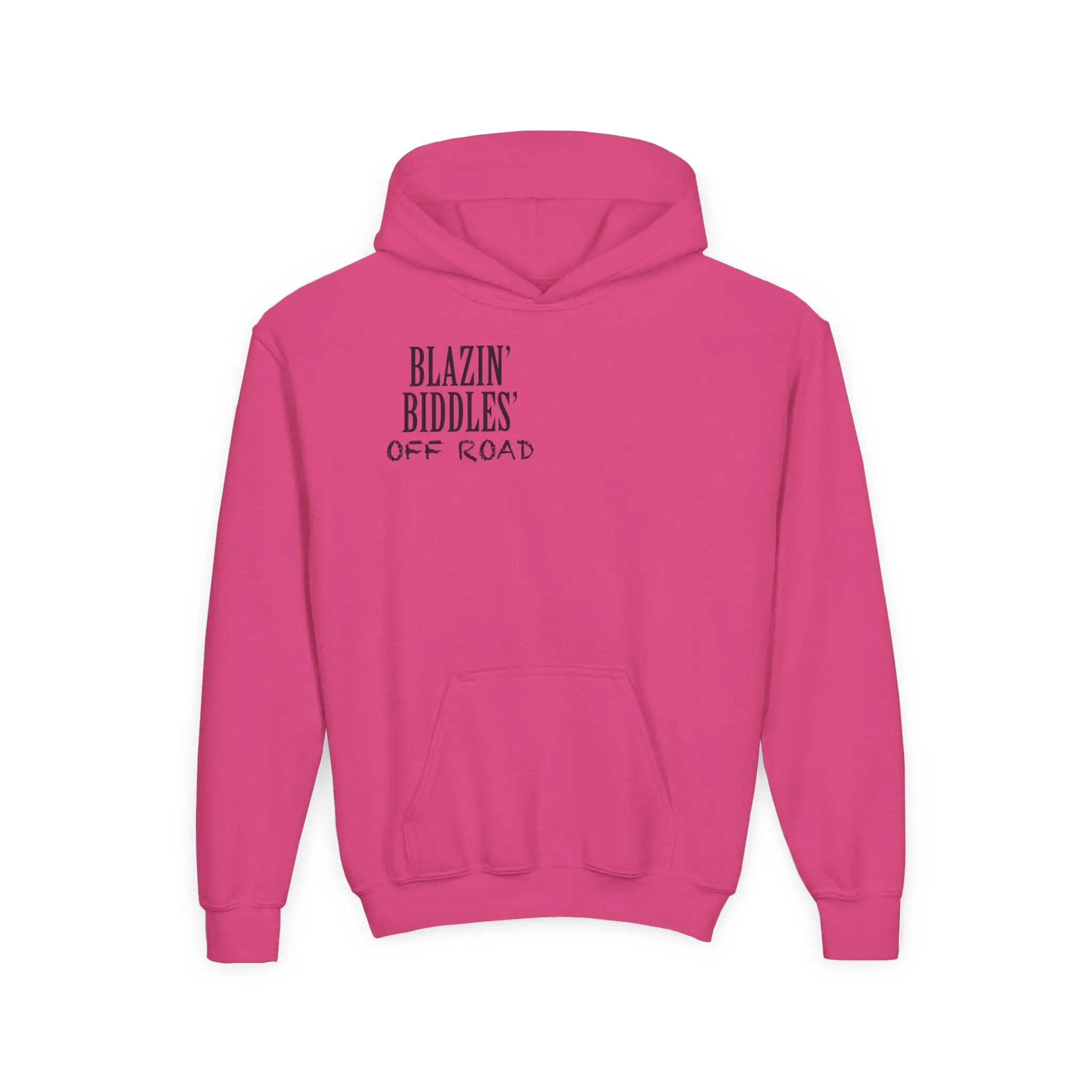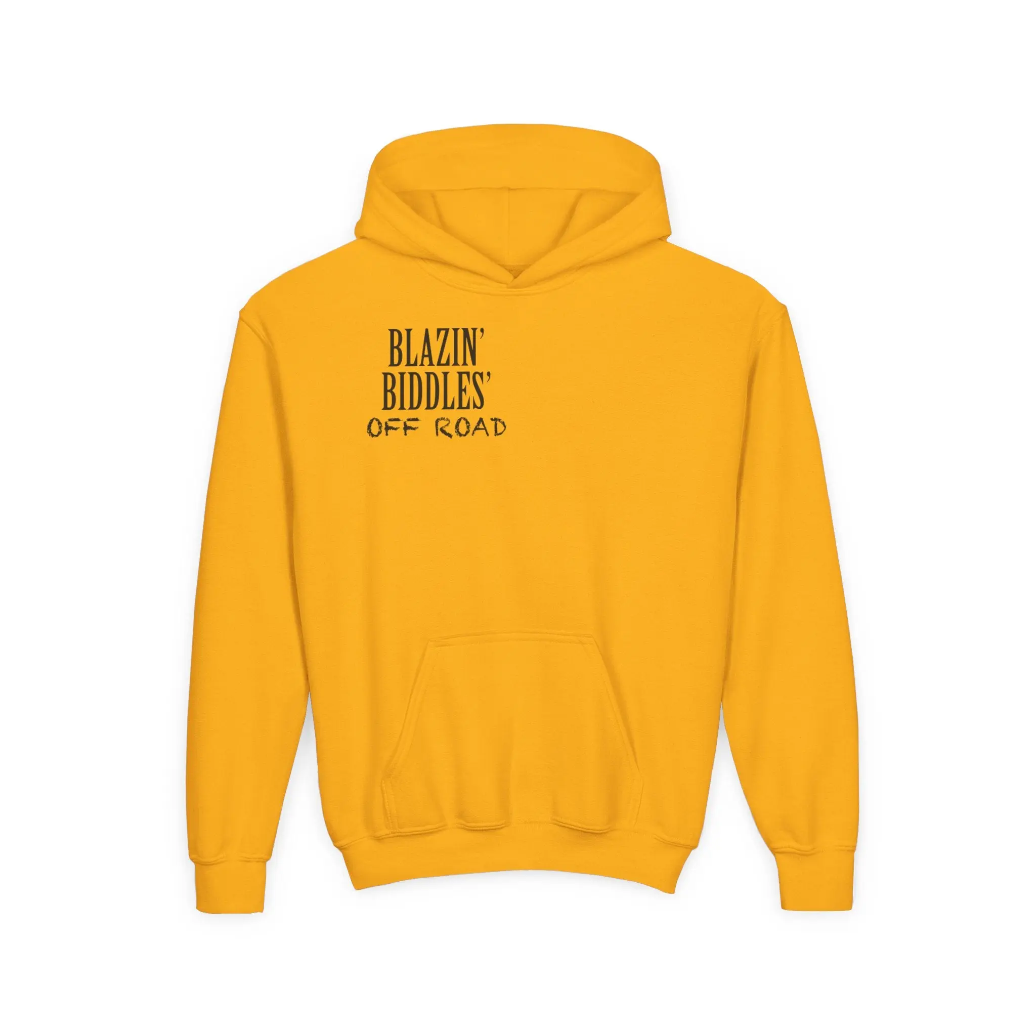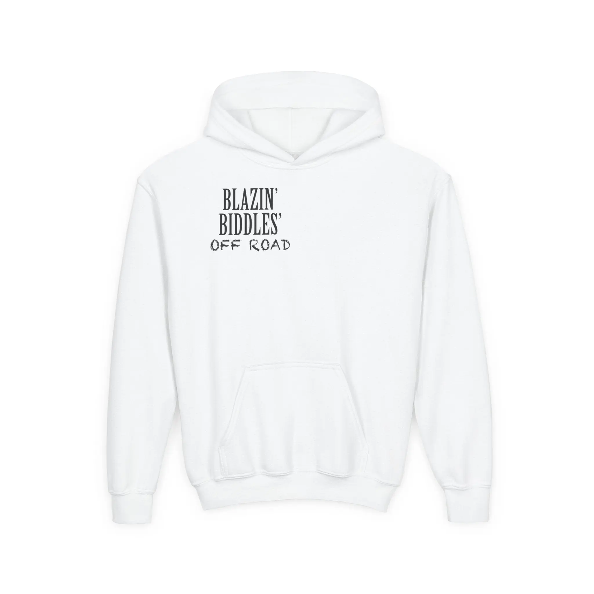Made from a soft 50/50 cotton-poly blend, this hoodie is cozy enough for chilly mornings, school days, or weekend adventures. The spacious kangaroo pocket adds both function and warmth, while the bold Blazin’ Biddles Off-Road logo shows off their passion for the lifestyle.