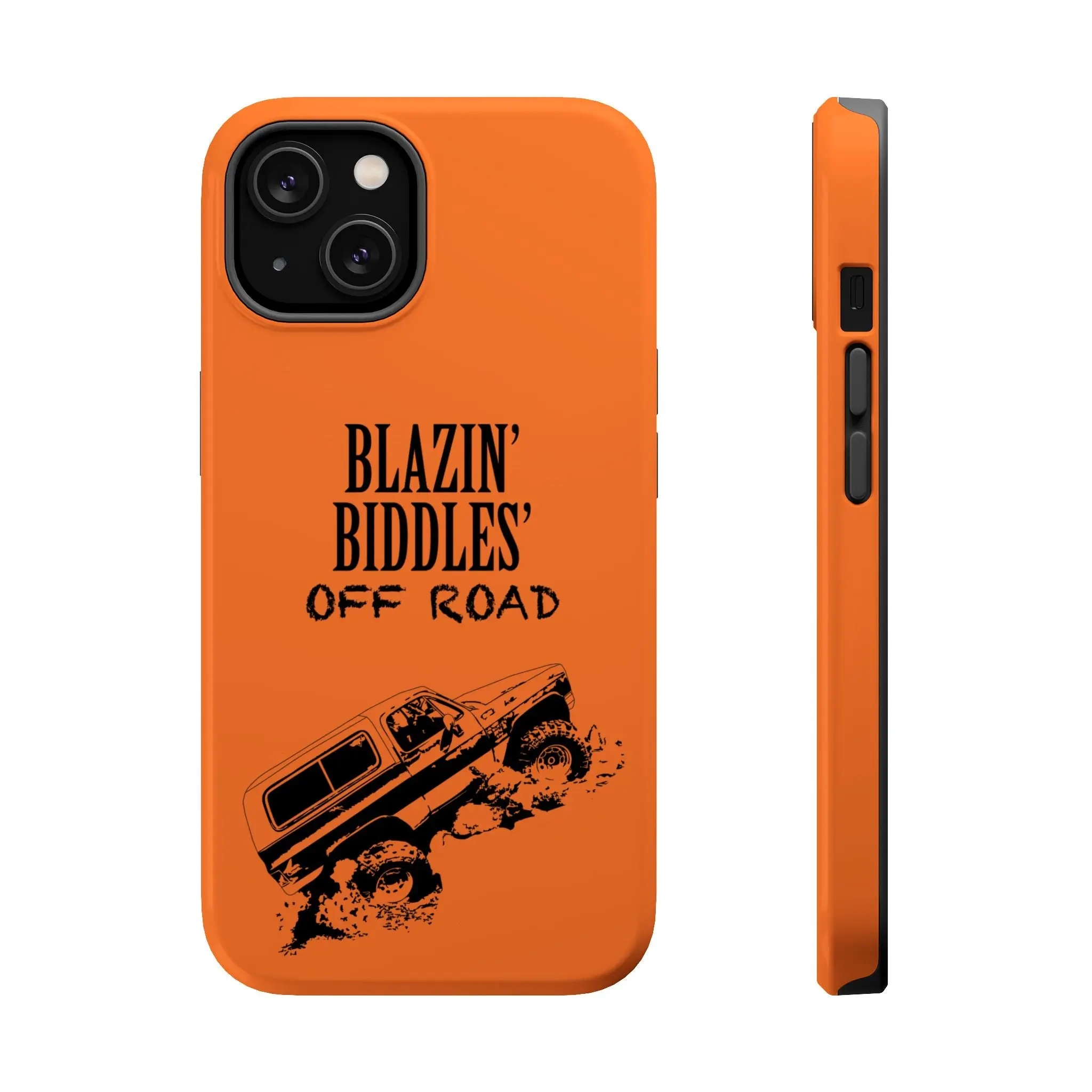 Feel the rumble of the trail every time you reach for your phone. This magnetic impact-resistant case channels the spirit of Blazin Biddles Offroad — bold colors, tough construction, and a design that looks like it was born in the dust and diesel of a weekend build. The full-wrap, photo-realistic print keeps that wild offroad vibe front-and-center. Inside, a cushioned TPU liner and dual-layer polycarbonate shell take the shock so your phone doesn’t. The embedded magnets let you snap into MagSafe accessories quickly between trail stops. Carrying this case means carrying a little bit of the garage, the campfire, and the long, loud drive home.