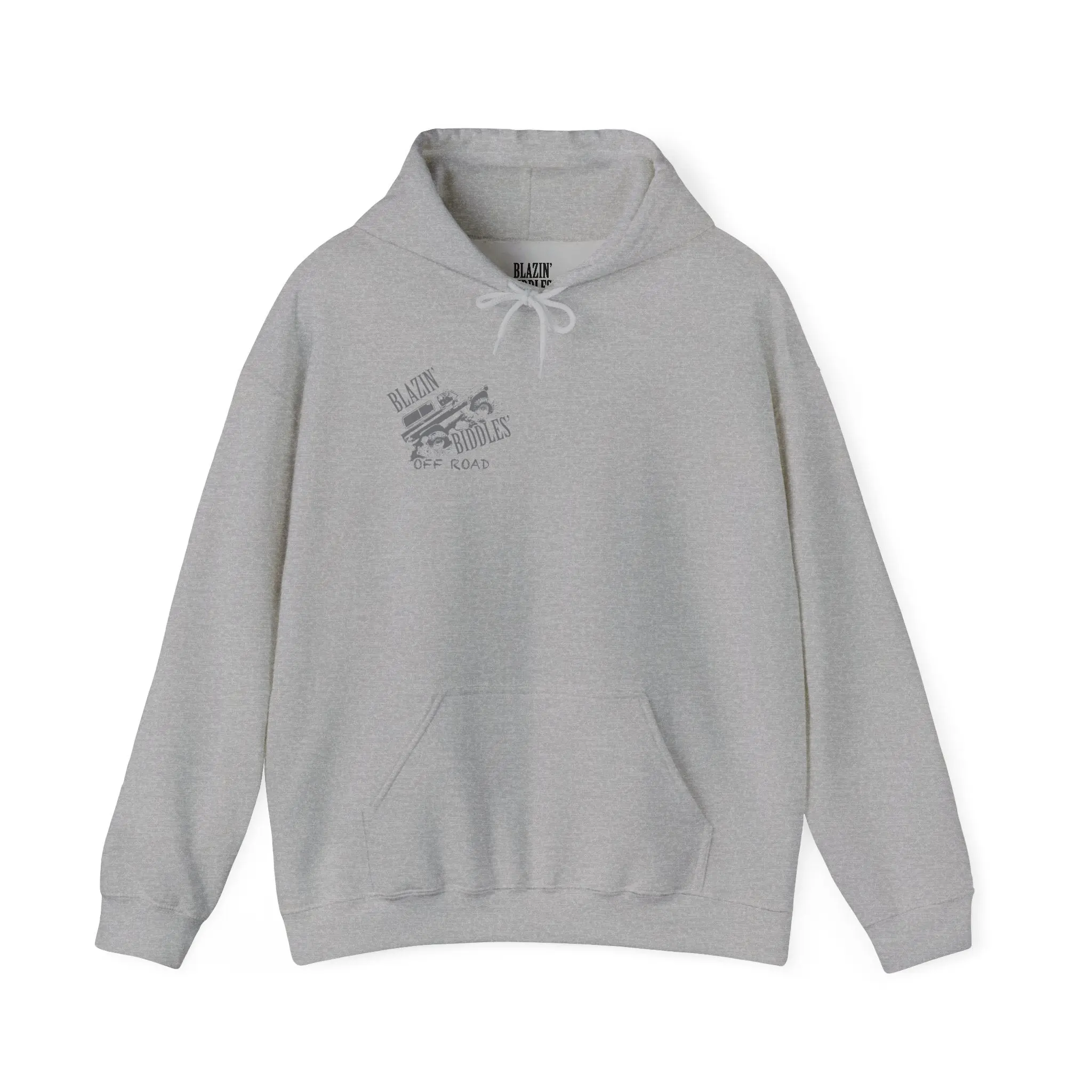 Slide into a hoodie that feels built for muddy trails, late-night campfires, and anything that calls for grit and comfort. This mid-weight pullover carries a subtle, distressed off-road graphic—muted on the chest and bolder across the back—so you can wear your love of dirt roads without shouting. The double-lined hood and color-matched drawcord keep rain and wind at bay, while the roomy kangaroo pocket warms your hands and holds small tools or a phone. Soft, resilient cotton-poly blend holds its shape after long weekends and frequent washes. Wear it on cool mornings before the trailhead, at garage nights under string lights, or on slow Sunday drives where the road turns to nothing. It’s comfortable, dependable, and made to move with you.