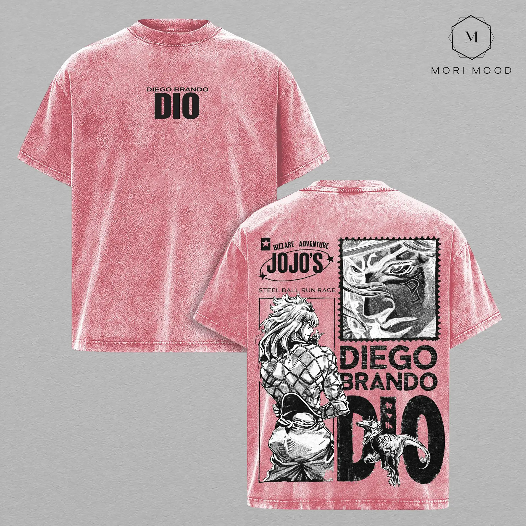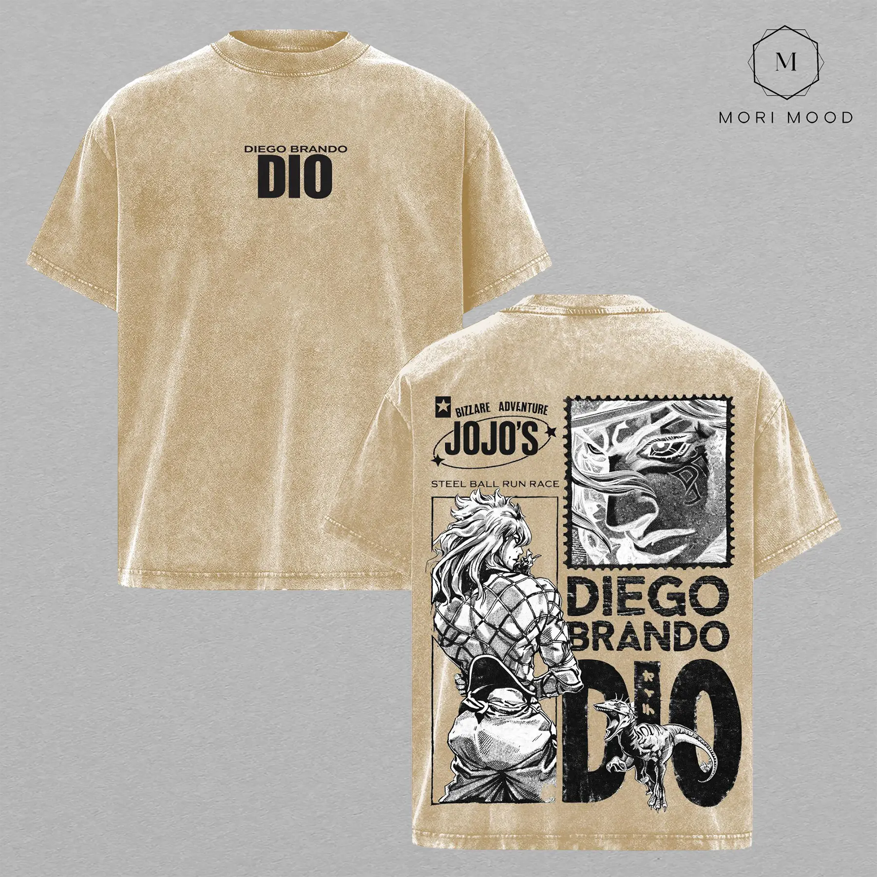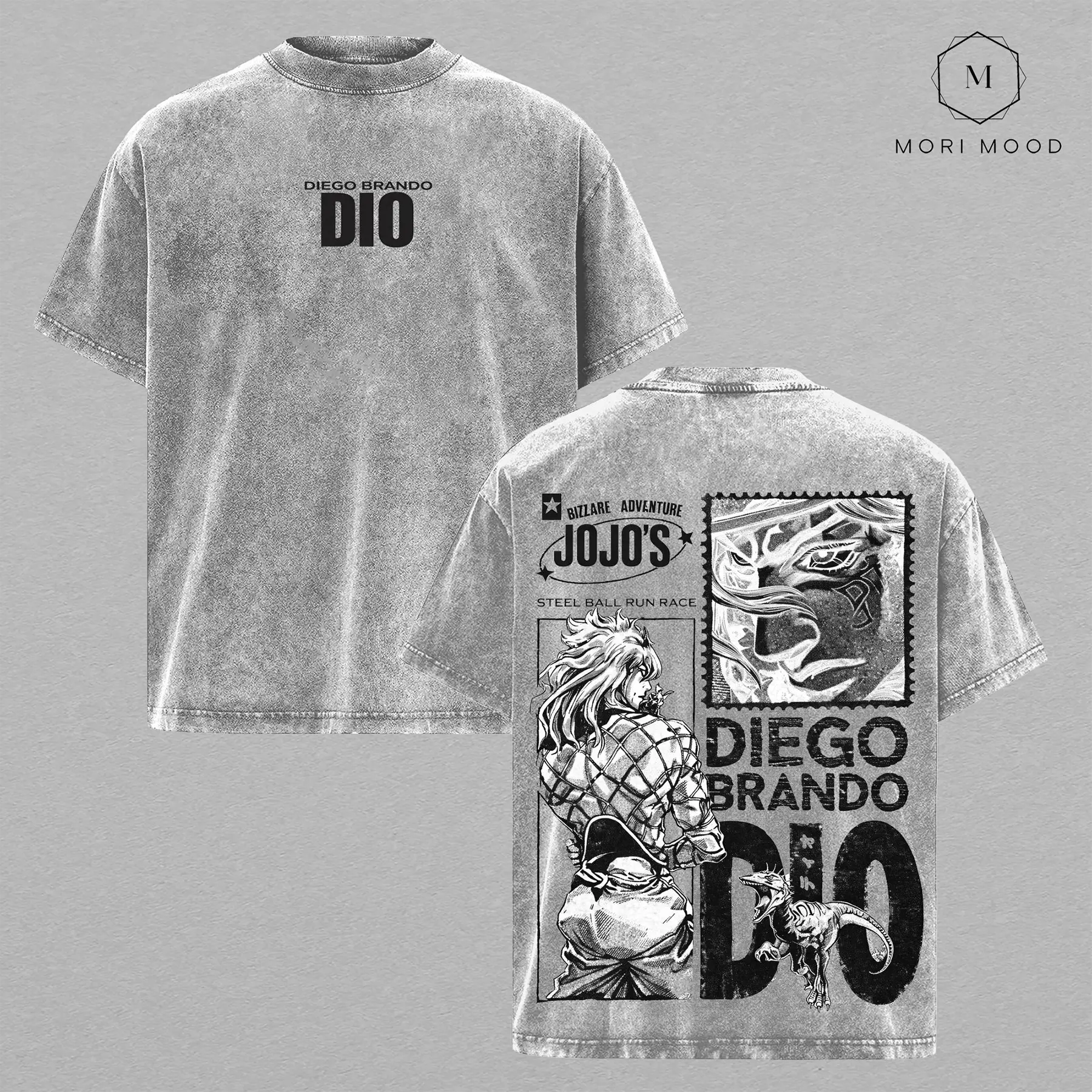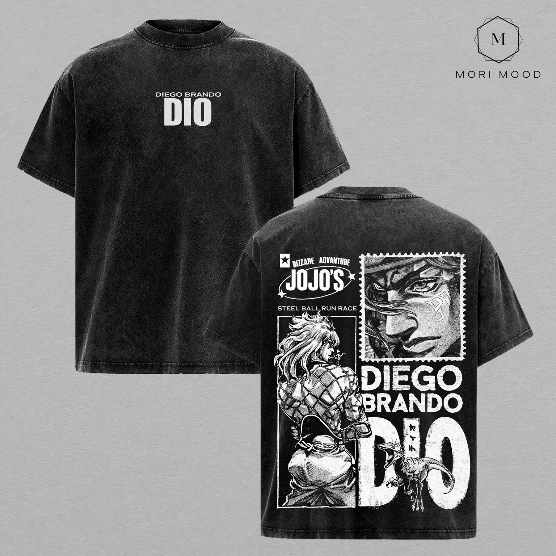 Diego Brando - JoJo’s Bizarre Adventure Steel Ball Run Vintage Washed T-Shirt, Oversized Heavyweight Premium Cotton Tee, Manga Panel Graphic Back Print, Grunge Monochrome Streetwear Anime Aesthetic Unisex Shirt