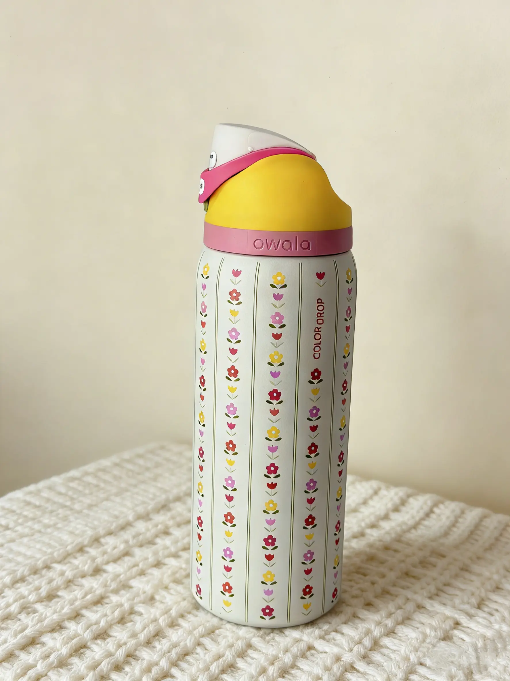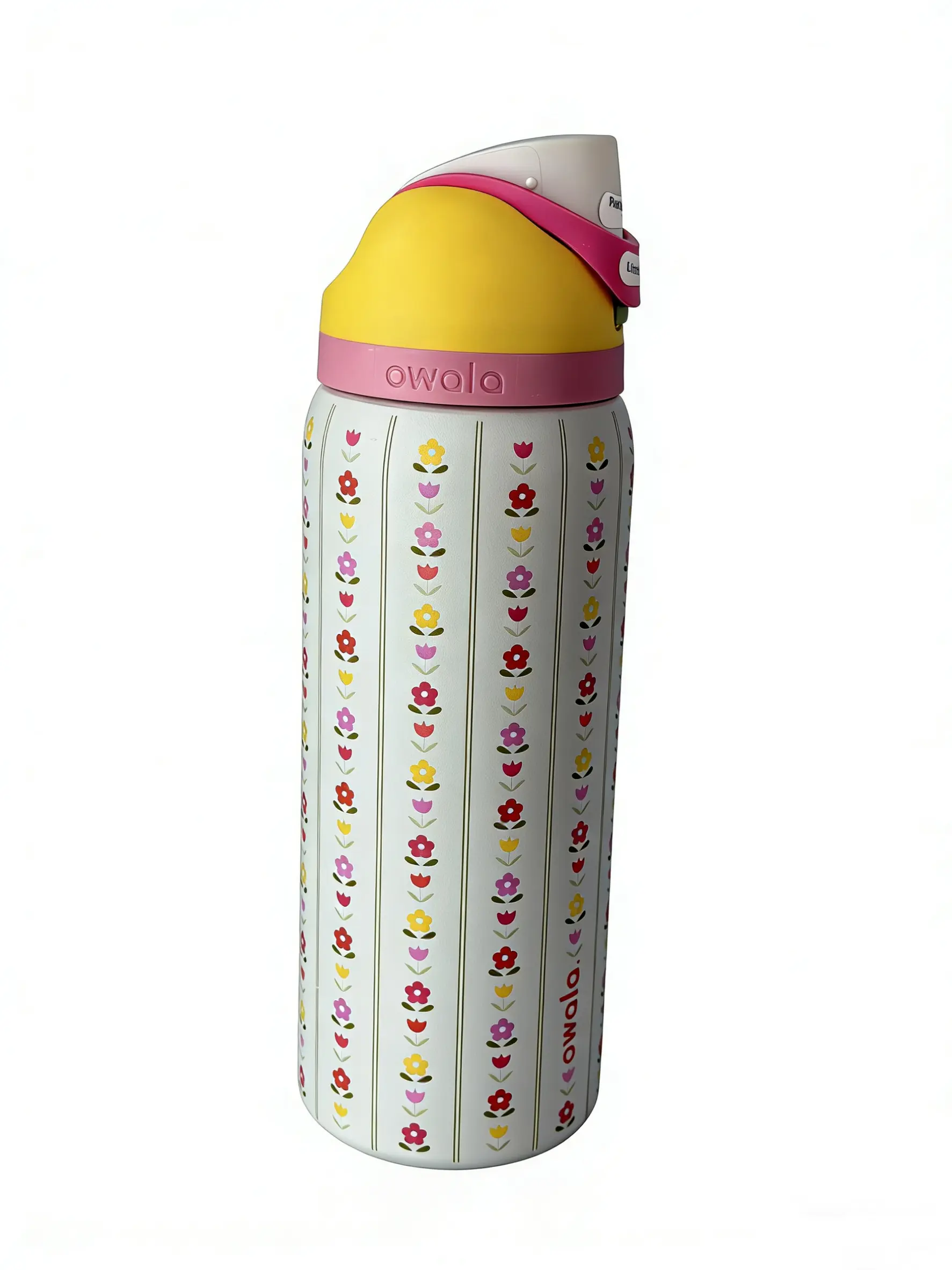 The bottle includes a portable mug lid and is designed for ice cubes. It's a stylish, reusable drinkware flask. Perfect for sports and everyday use, this Owala bottle is a must-have for anyone looking for a functional and fashionable water bottle. 🌸