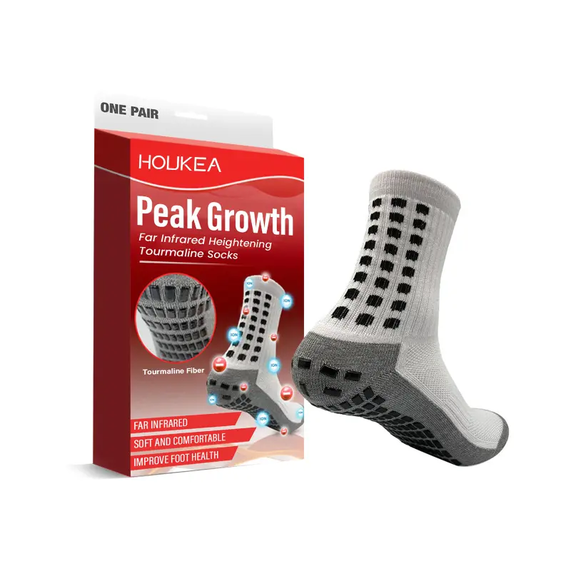 Our ion socks contain fibers and silicone. They can help increase height by promoting bone health, optimizing height potential, and enhancing overall skeletal health. They are very easy to use: keep your feet dry and use them during daily activities. They can also take care of your body