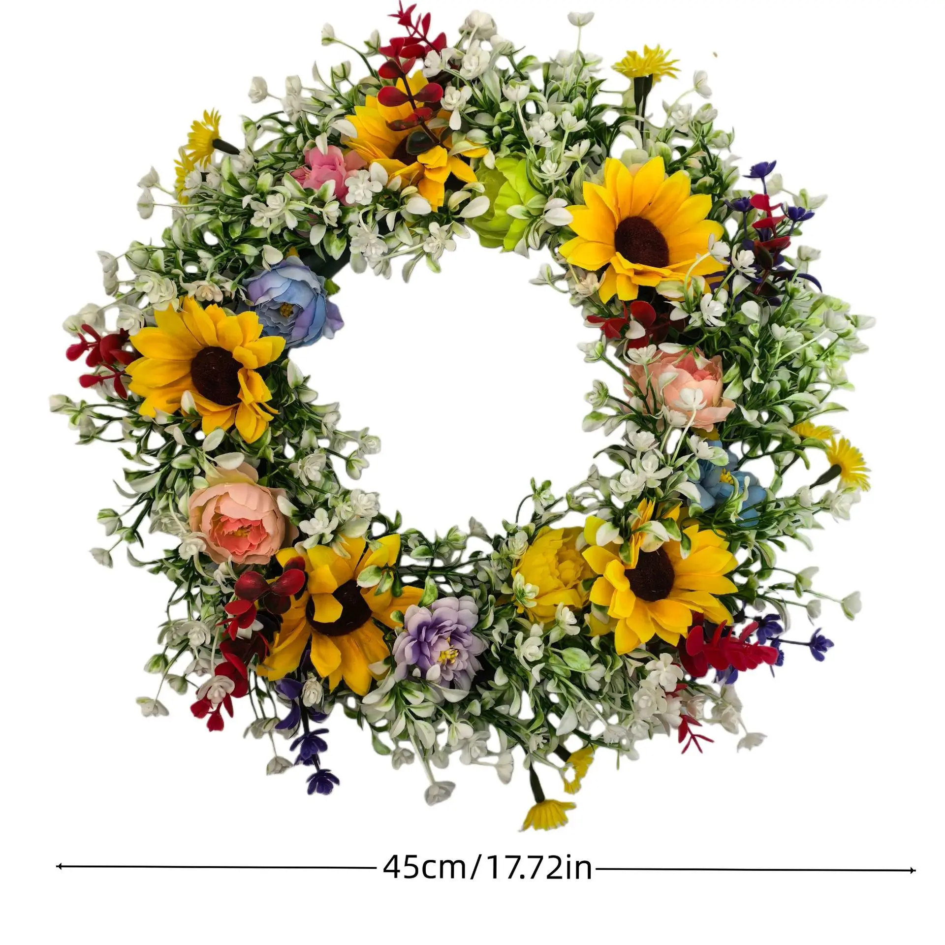 Elevate your home’s curb appeal with the highest-quality artificial sunflower wreath on the market—engineered for durability, designed for beauty, and built to last through every season. This 17.7-inch (45cm) wreath isn’t just decor; it’s a long-term investment in your home’s style, crafted with premium materials that outperform cheap, flimsy alternatives.