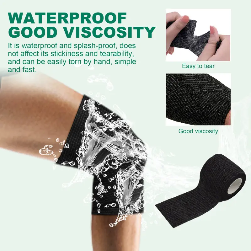 Our elastic self-adhesive sports bandage contains fabric and spandex. It can help protect the knee joint and provide support for it, making it suitable for various sports. Its use is very simple: after cleaning and drying the knee, simply wrap it around the knee. It also serves as a knee protector