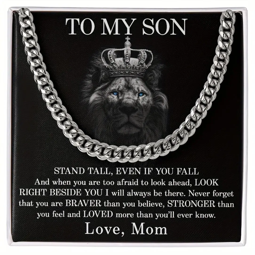 To My Son's Cuban Link Chain Necklace with Gift Card & Gift Box, 1 Count Rapper Hiphop Rock Style Torque, Perfect Valentine's Day Graduation Gift for Men, Sentimental Necklaces, Stainless Steel Choker