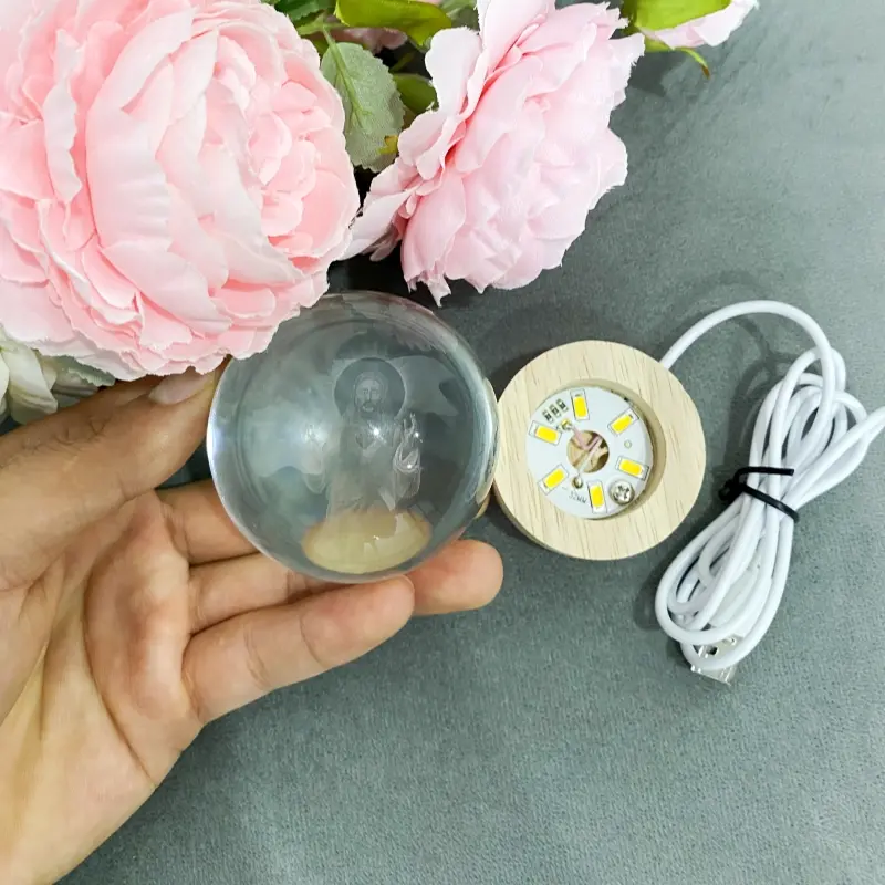 High-Quality Crystal Ball with stand: This Catholic gift is madeof high-quality K9 crystal, elegant and durable, without bubblesor impurities.Each crystal comes with a wooden base for durability.