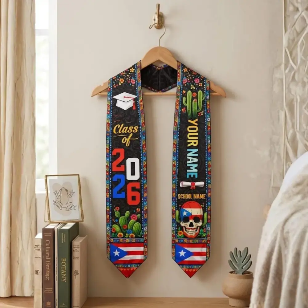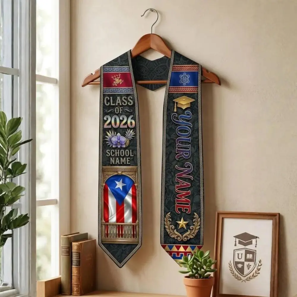 [HOT] Personalized Puerto Ricans Flag Graduation Sash 2026, Puerto Rico Graduation Gift Stole, Puerto Rico Graduation Sash 2026