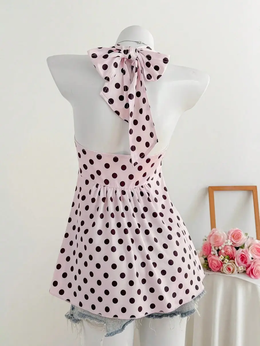 Comfortcana Women's Apricot Color Twist Back Halter Neck Top