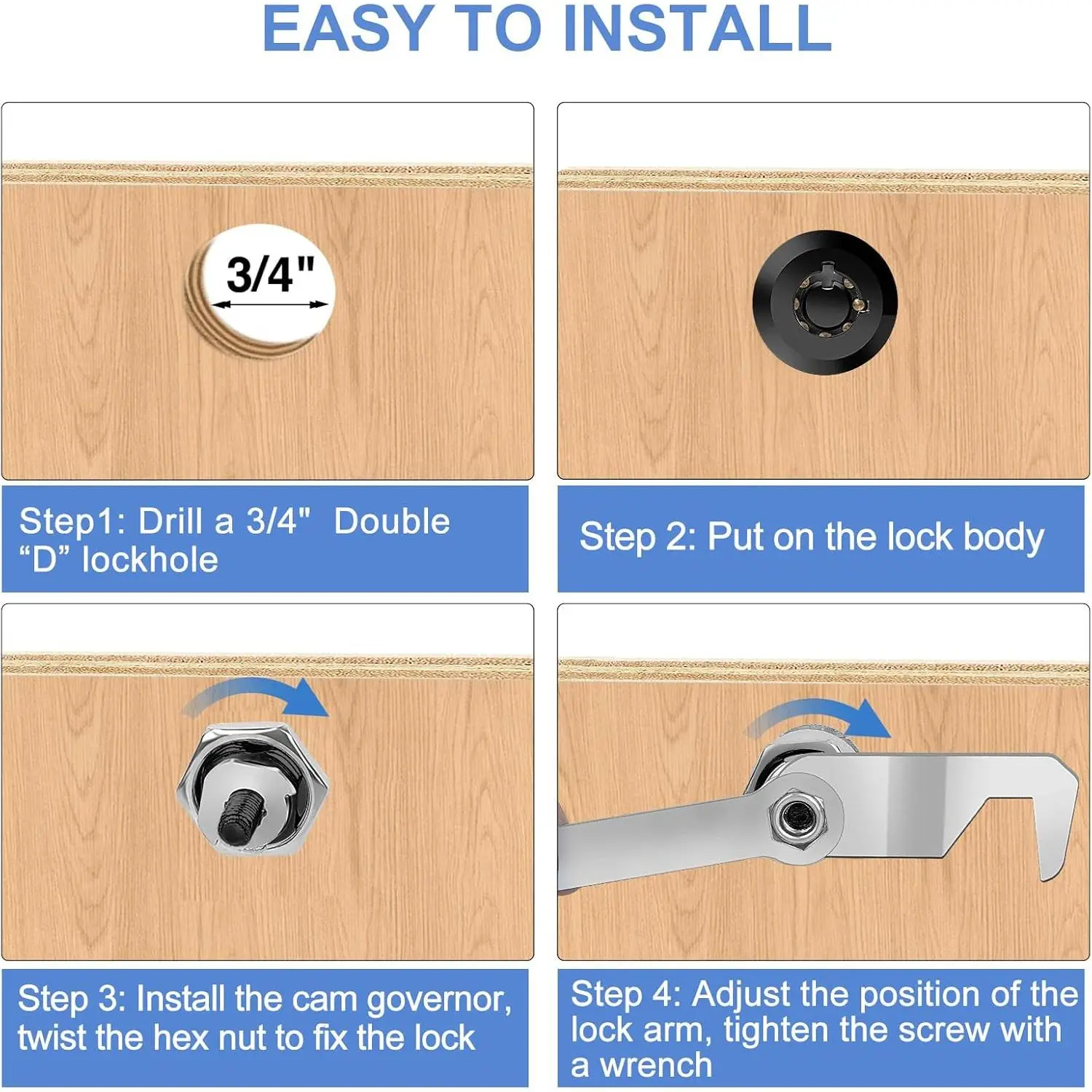 [Check Before Purchase]Please read size guidance before purchase, choose correct lock size according to both your latching distance & door thickness.Make sure both measurement fits.Latching distance measure from the front of the door face to the latch locking-up position.Toolbox locks work for a standard mounting hole of 3/4 inch diameter.Installation is quick and easy with Installation Guide Included, opens with a 90 degree turn, key is removable at unlocked position.