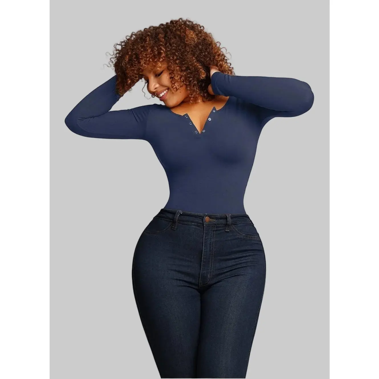 Sculpt your silhouette with our button Tummy Control Bodysuit. Designed with built-in shaping to smooth and support your midsection, this sleek bodysuit features a flattering button neckline and a seamless fit that hugs your curves in all the right places. Perfect for layering or wearing on its own, it delivers confidence, comfort, and style in one must-have piece.