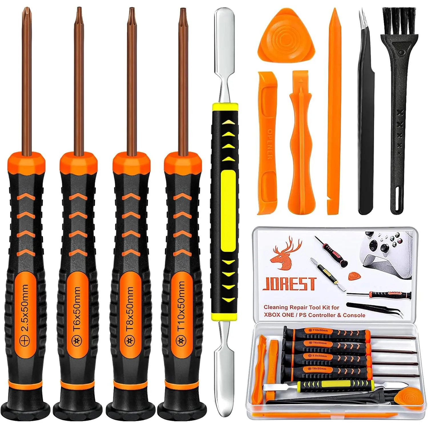 Xbox One/360/X, PS4 PS3 PS5 Repair Kit with PH0 T6 T8 T10 Torx Security Screwdriver, Precision Crowbars, Anti-Static Tweezers, and Professional Cleaning Tools for Controller and Console Maintenance