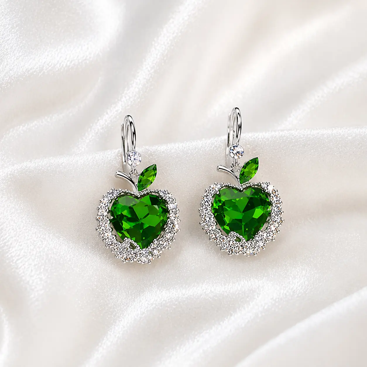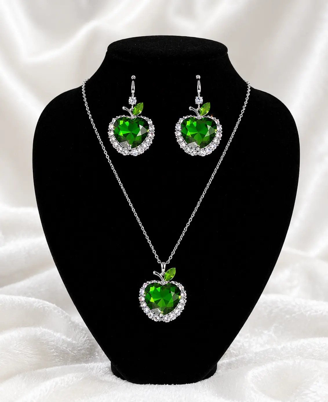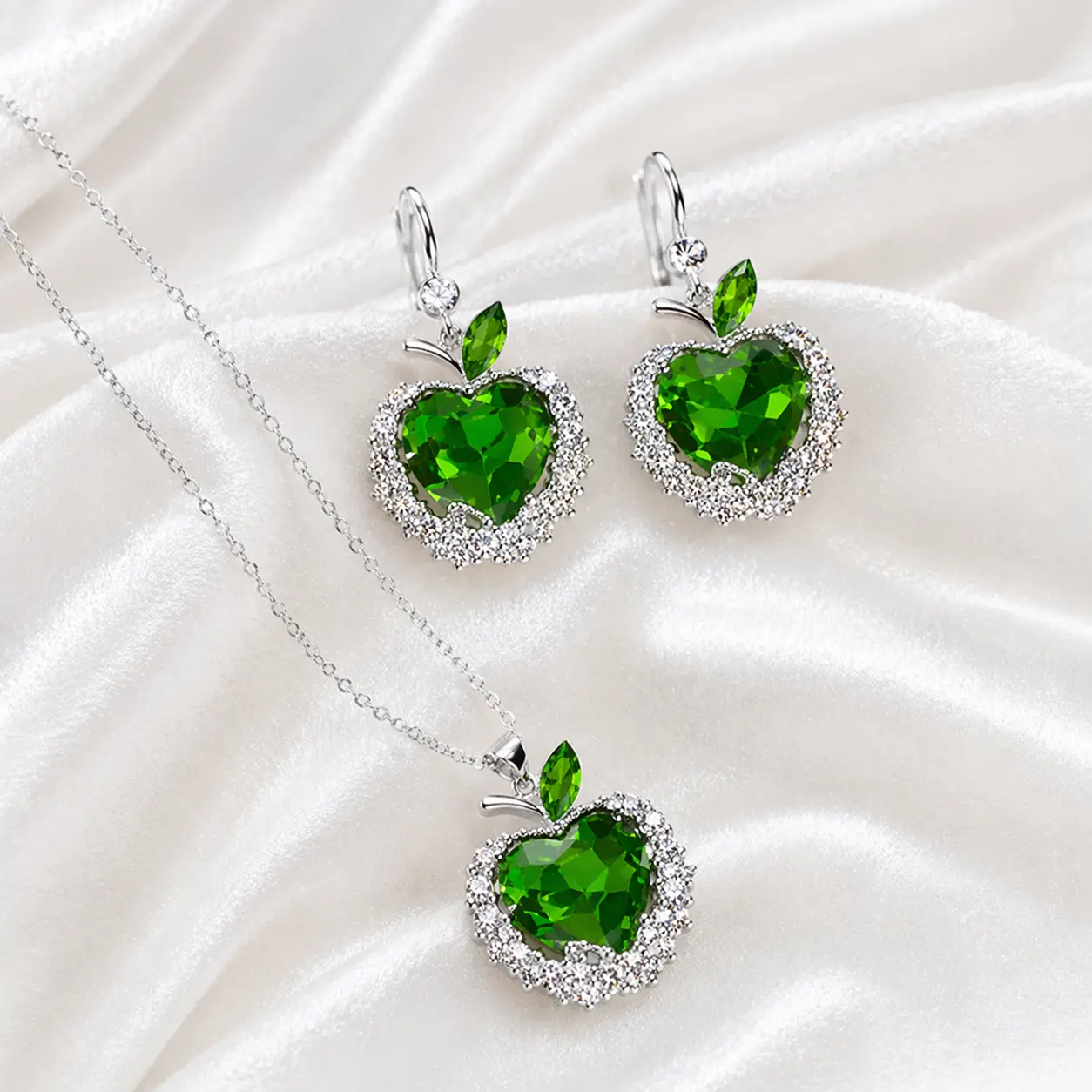 Green Apple Crystal Jewelry Set – Necklace & Earrings