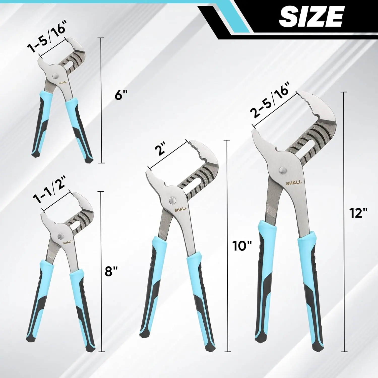 Set Includes: Comes with 4 pieces of groove joint pliers in sizes 6" 8" 10" and 12", which will make your work easier, safer, and more efficient