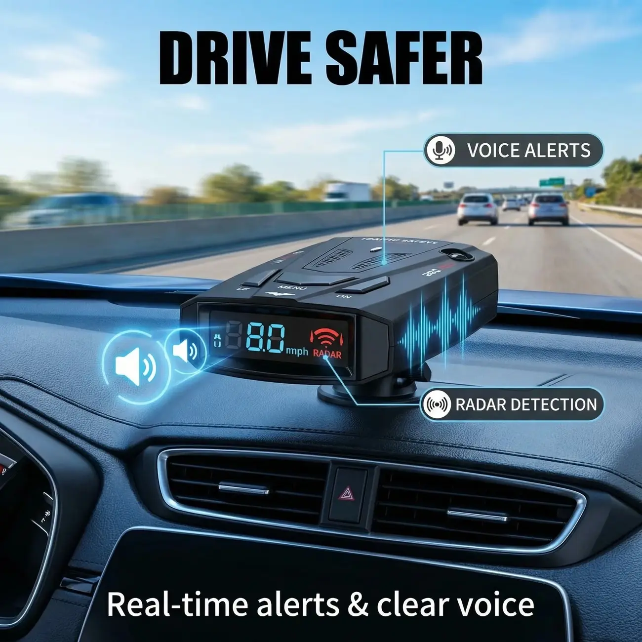 Stay Alert On-Board Safety Companion - Instant Setup Universal Fit for Any Vehicle, Smart Voice Warnings & LED Display, Dual-Mode for City/Highway, Must-Have Car Safety Accessory