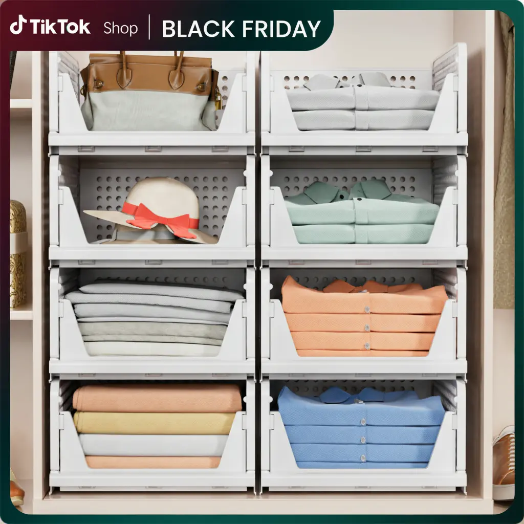 4 Pack 5 Pack Folding Closet Organizers Storage Box, Stackable Storage Bins, Plastic Drawer Basket Closet Storage for Wardrobe Cupboard Kitchen Bathroom Office
