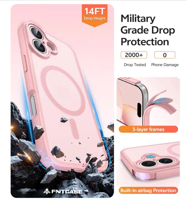 ·14FT Military Grade Drop Protection: Our Phone Case iPhone 16 backplane is made with rigid polycarbonate and flexible shockproof TPU bumpers around the edge and features 4 built-in corner Airbags to absorb impact, which can prevent your Phone from accidental drops, bumps, and scratches