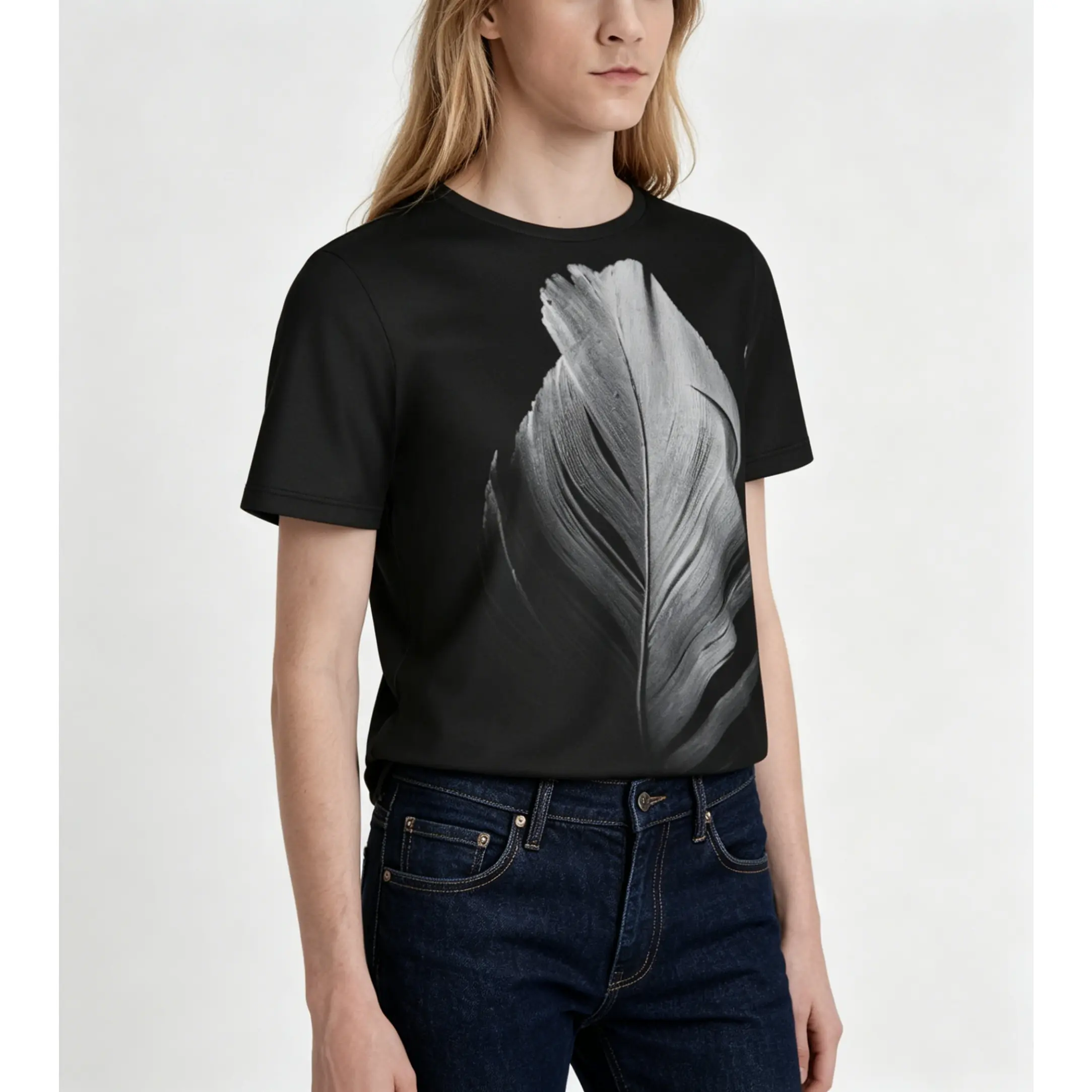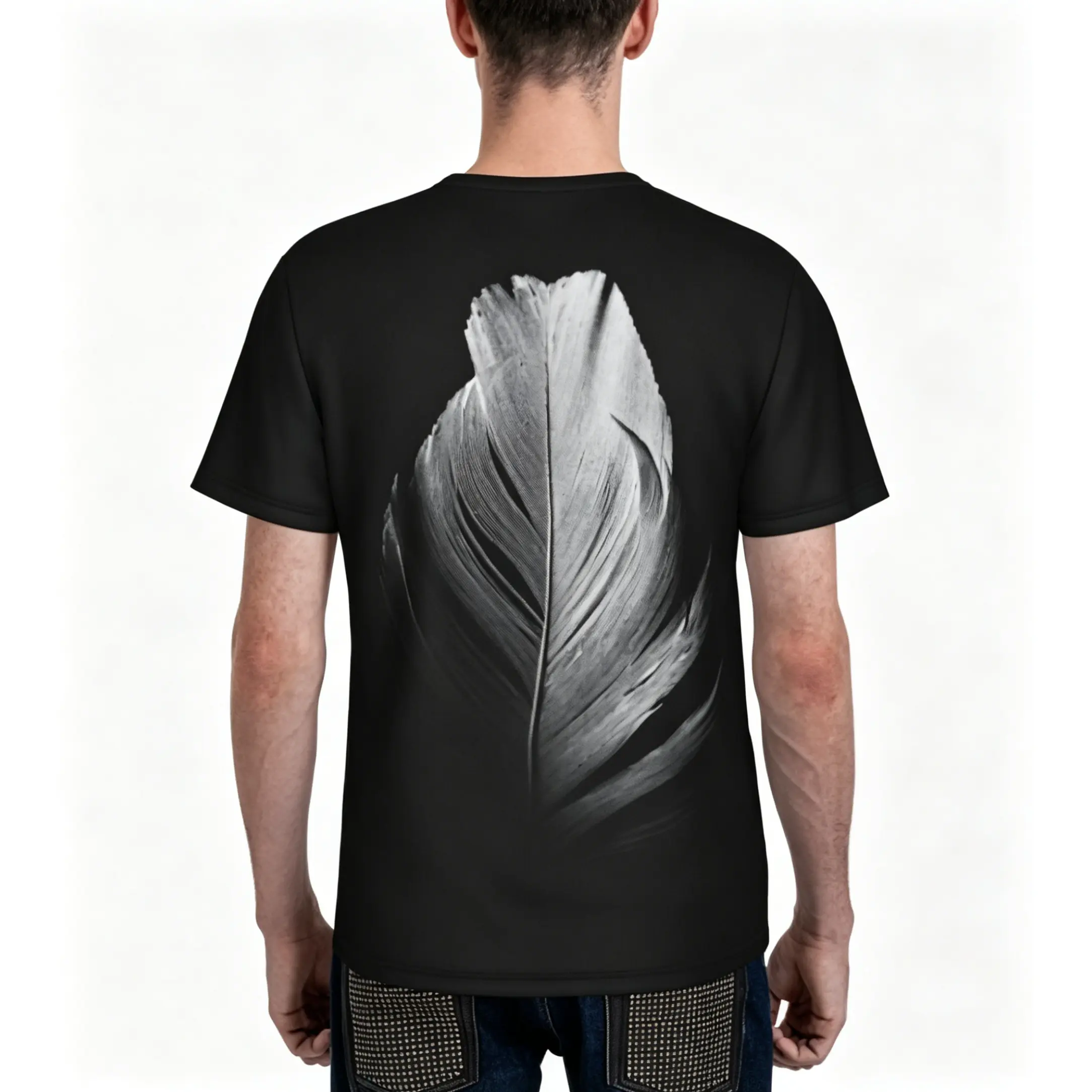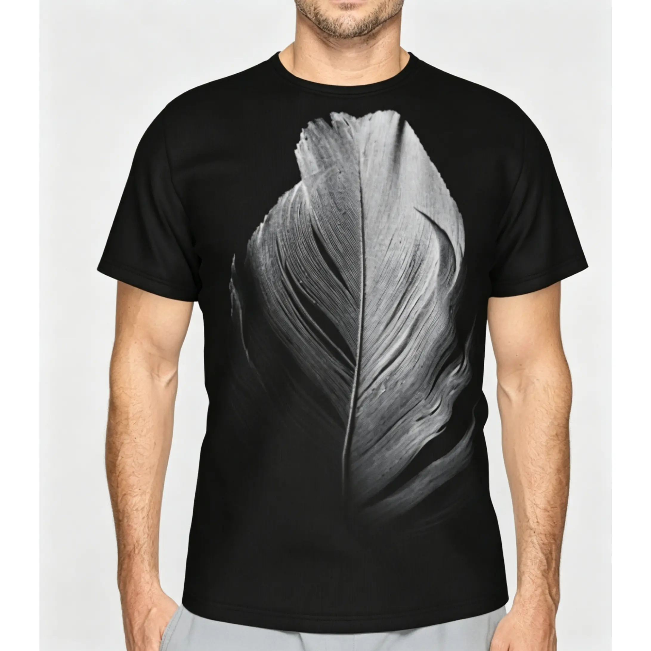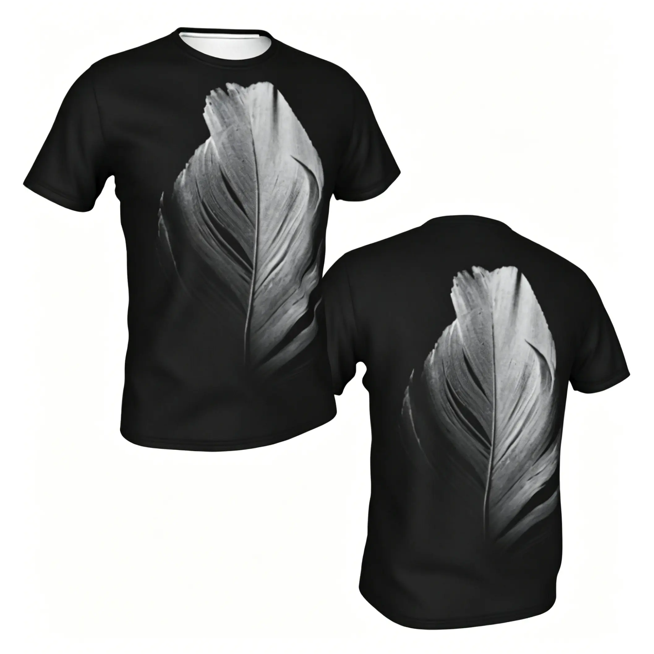 5. Black and white feather pattern summer all-over print short-sleeve 3D printed T-shirt, unisex outdoor comfortable top, party clothing, couple pattern, gift for friends