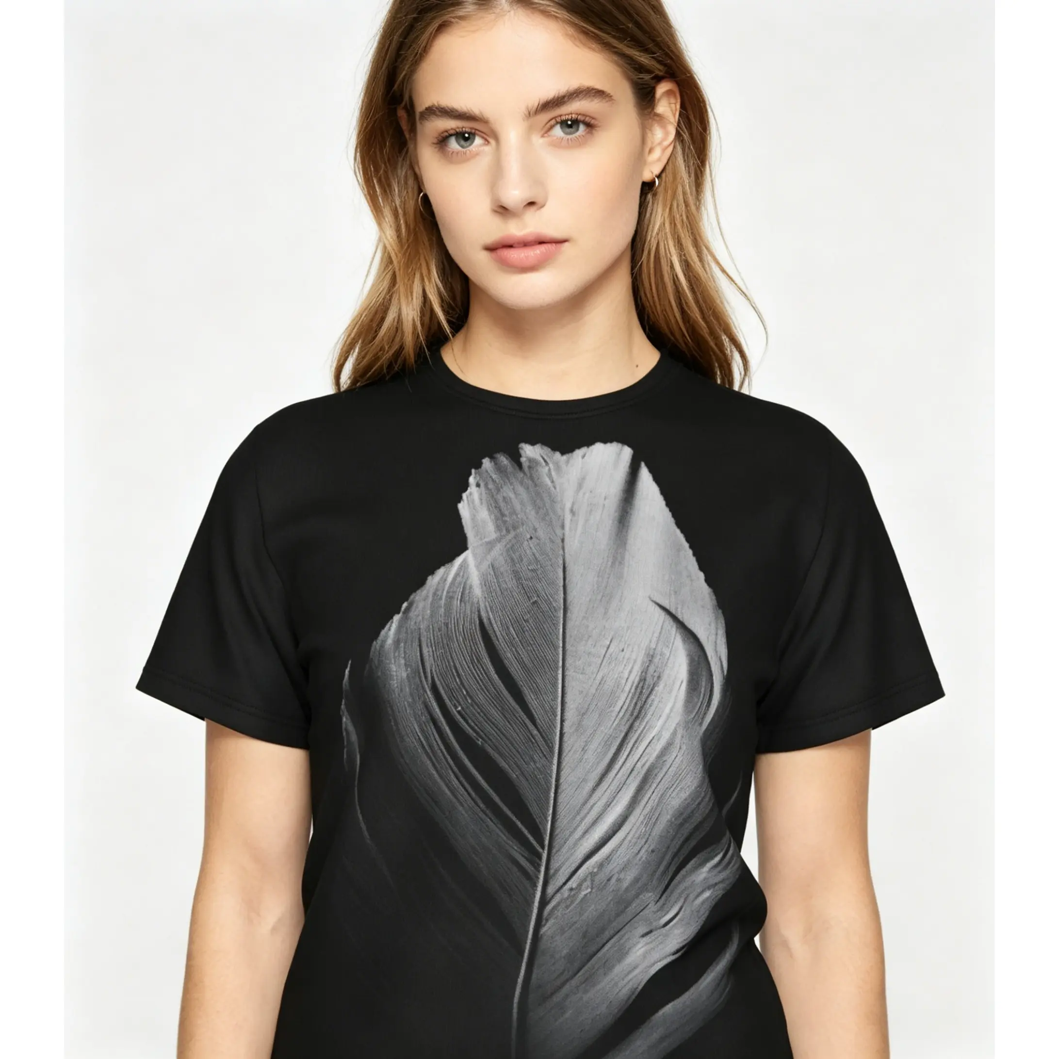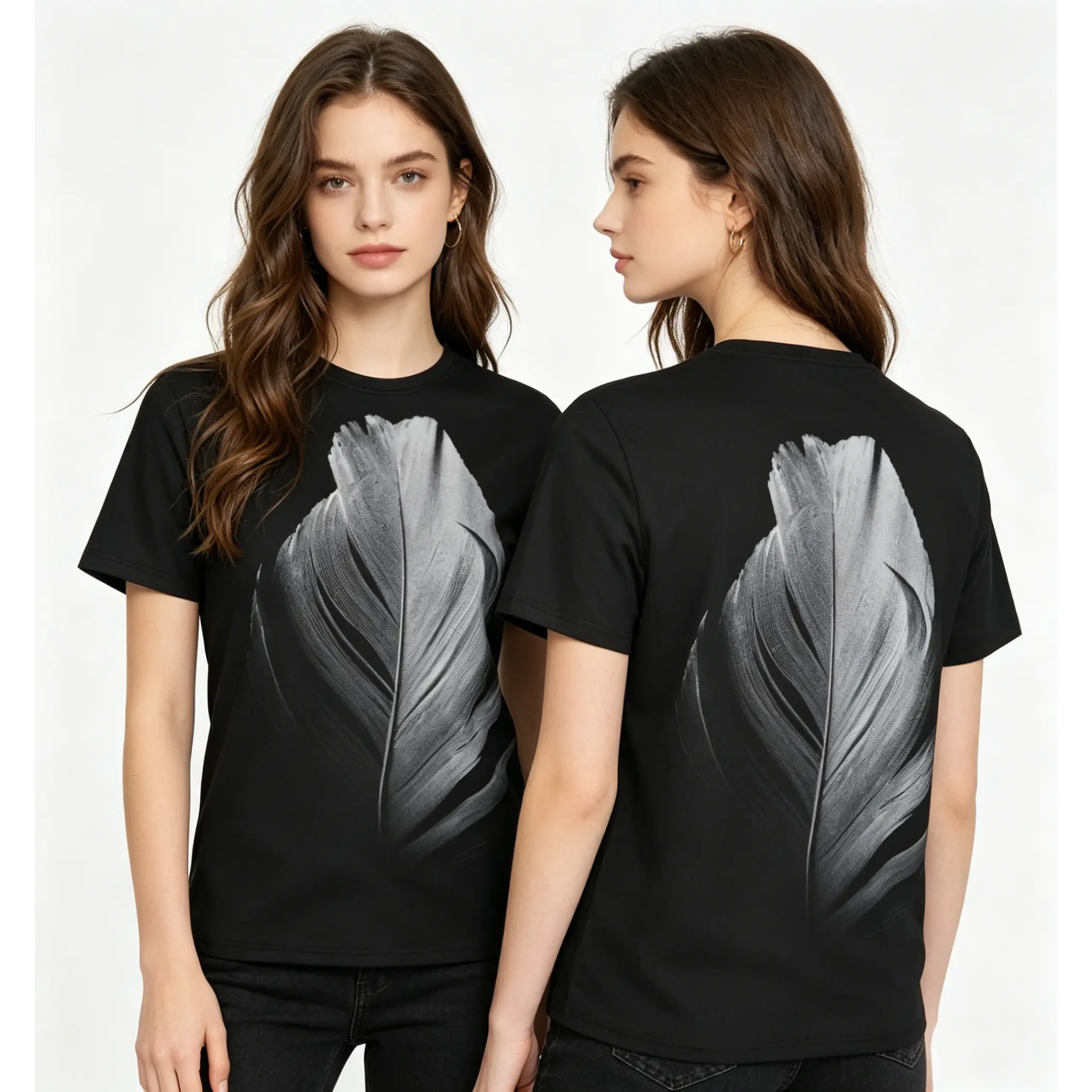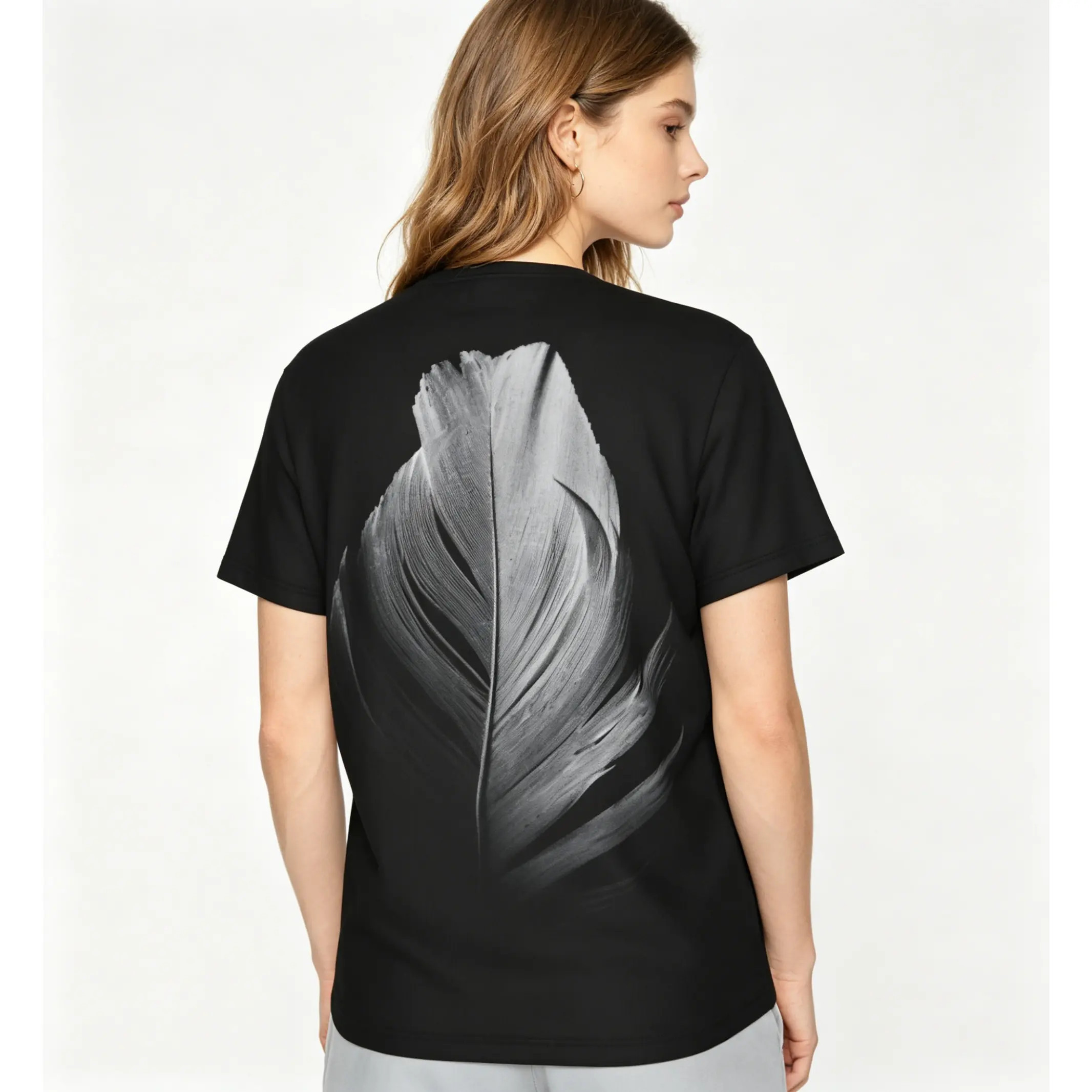 Black and white feather pattern summer all-over print short-sleeve 3D printed T-shirt, unisex outdoor comfortable top, party clothing, couple pattern, gift for friends