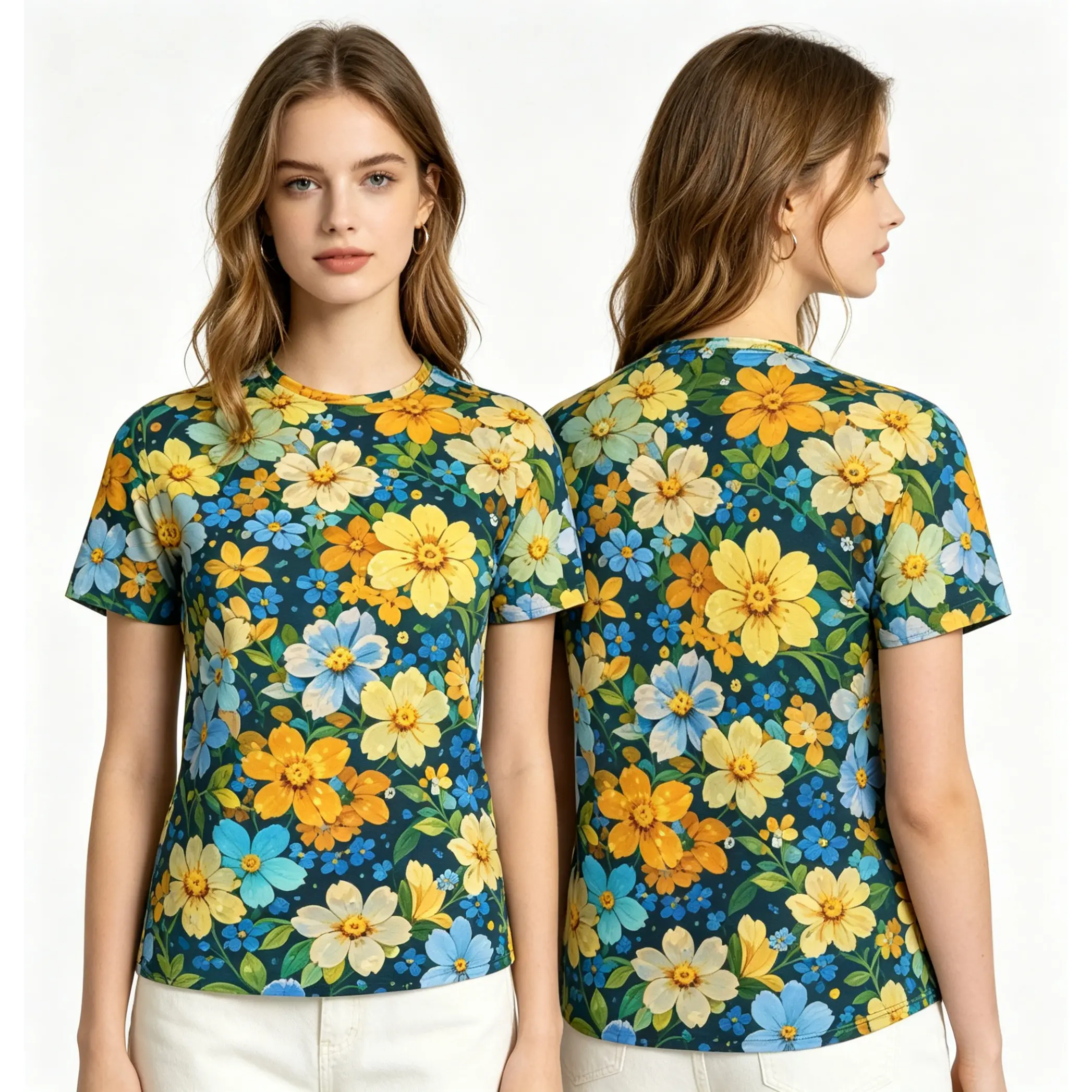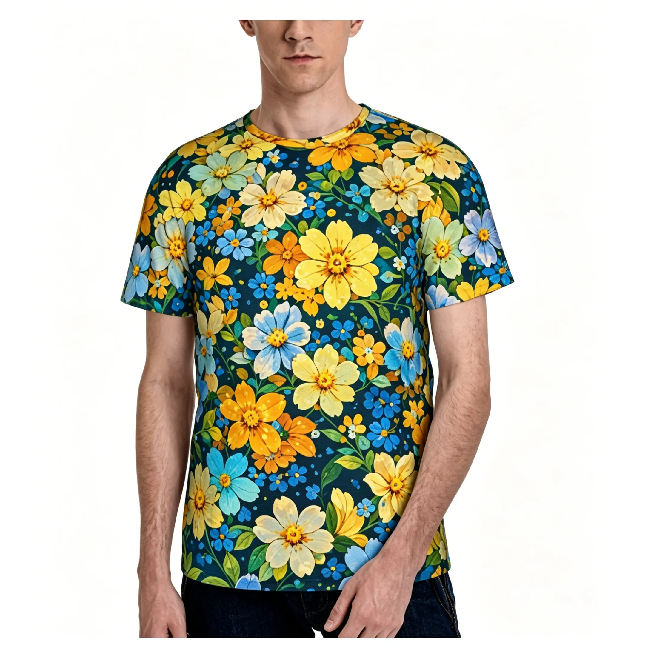 5. Summer Floral Oil Painting Style Flower Sea Summer Full-Print Short-Sleeve 3D Printed T-Shirt Unisex Outdoor Comfortable Top Party Clothes Couple Pattern Gift for Friends
