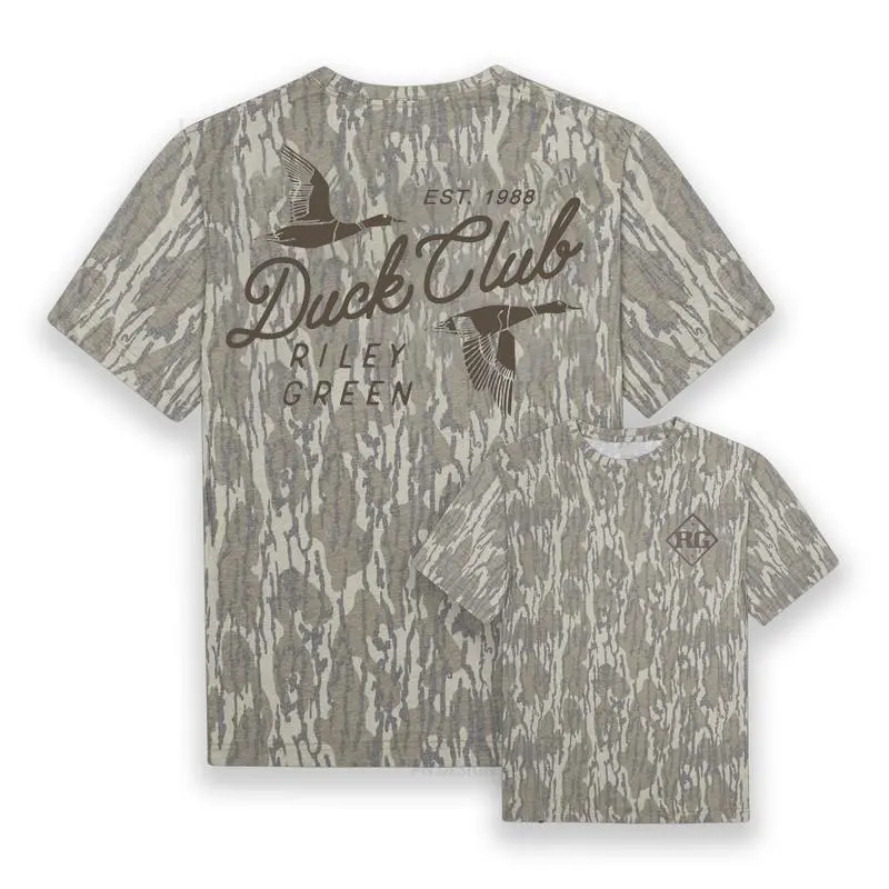 Riley Green Duck Club Real Tree Classic Camo Dri-Fit Tee – Performance Hunting Shirt, Original Bottomland