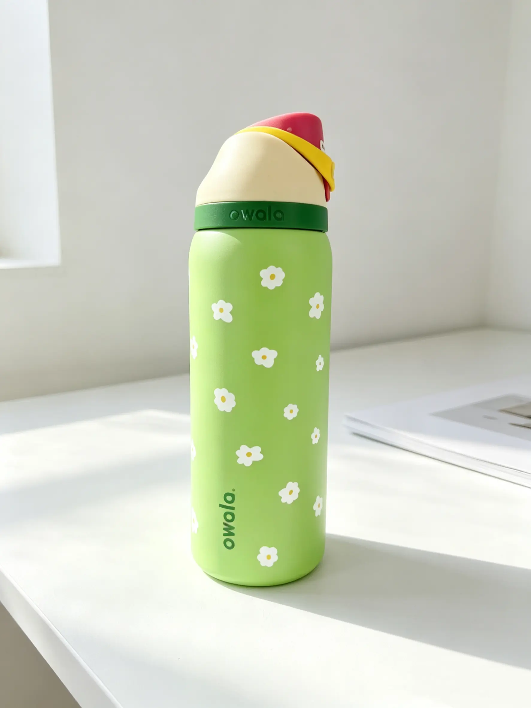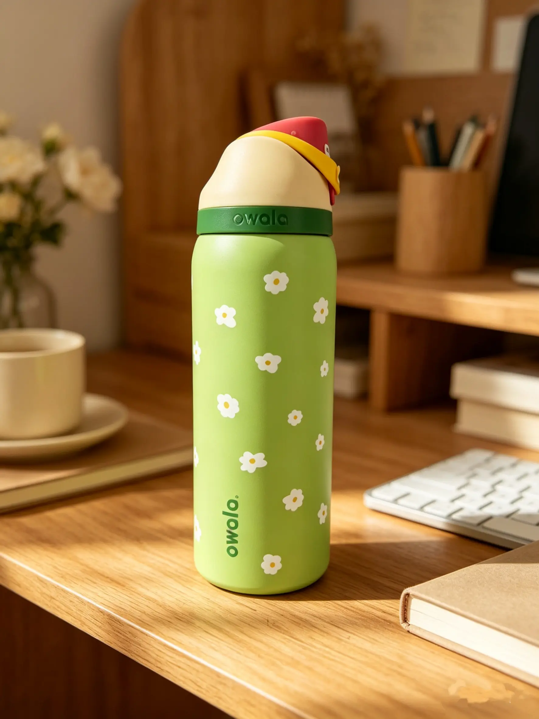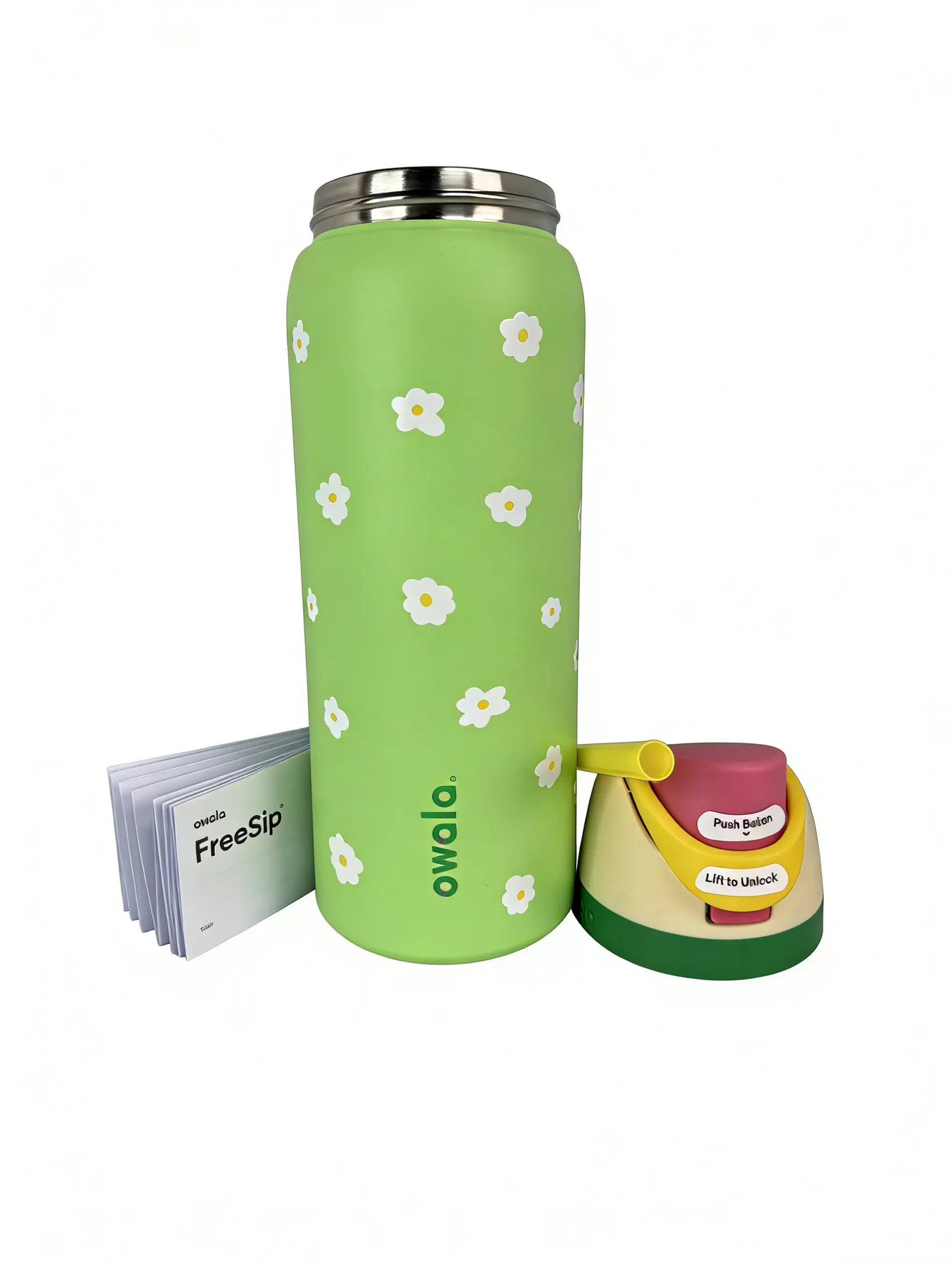 🌿 Owala 32oz Pastel Green Floral Insulated Water Bottle