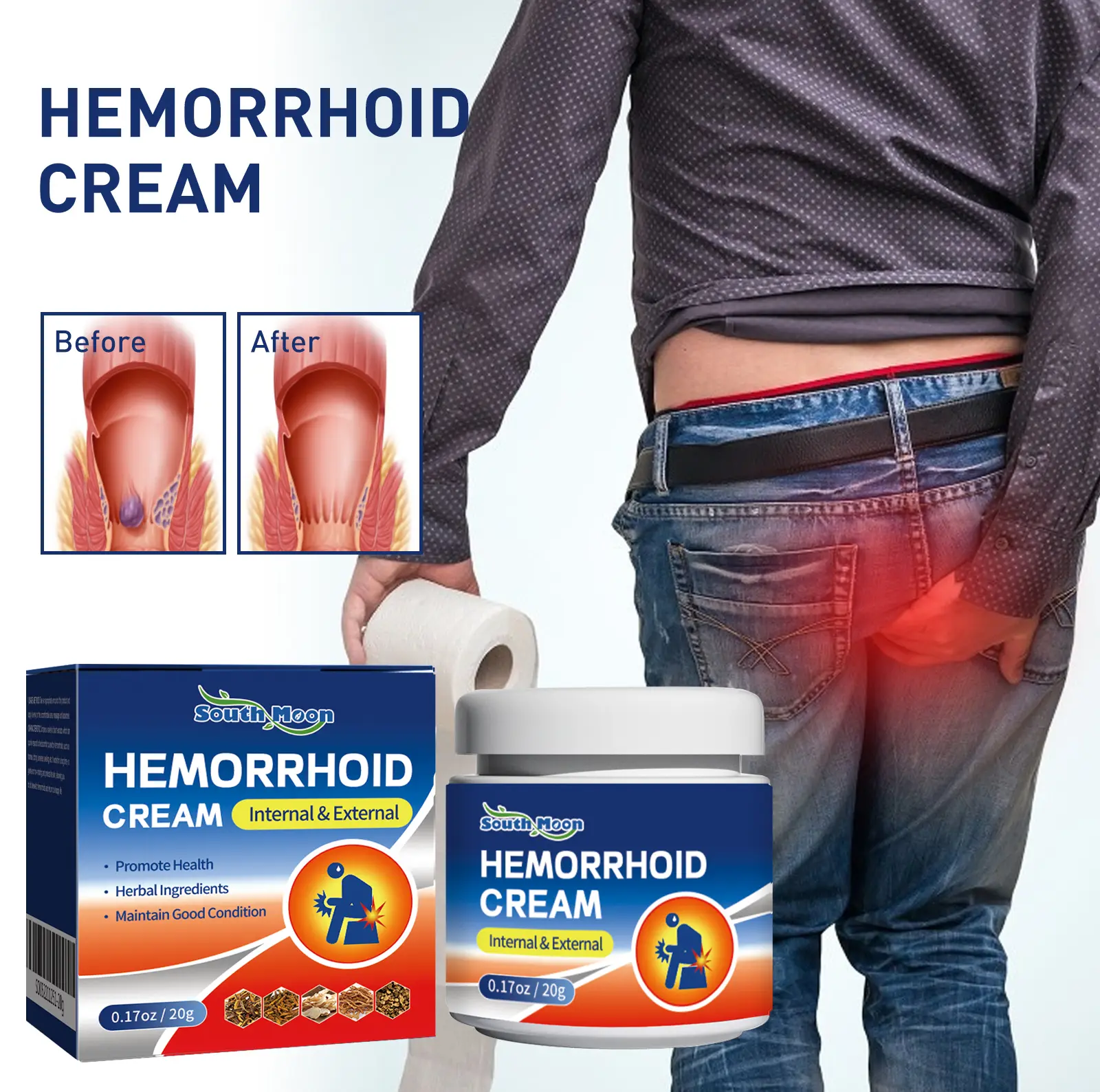 South Moon Hemorrhoid Ointment, Repairs Anal Swelling, Itching, Eliminates Hemorrhoid Lumps, Relieves Pain for Internal, External and Mixed Hemorrhoids