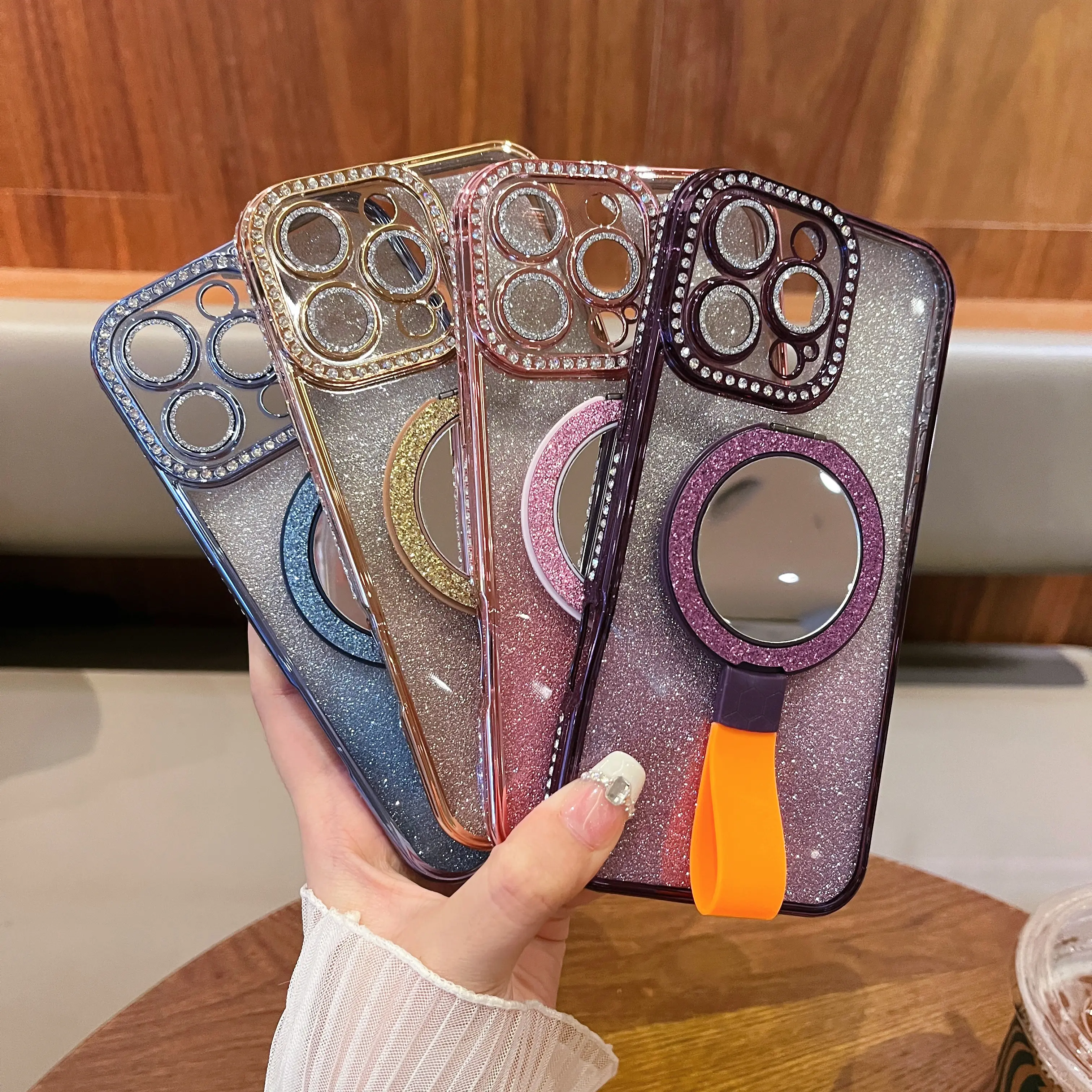 No more digging in your bag for a mirror! The high-definition mirror lets you touch up lipstick, fix your makeup, or take selfies anytime, anywhere. Pull out the soft silicone strap, and it instantly becomes a hands-free stand—perfect for watching TikTok, scrolling reels, or video calls, both vertically and horizontally.