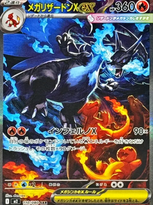 Mega Charizard X ex (SAR/MA): The top chase card of the set, featuring a "Mega Attack" secret rarity (MA) with bold Japanese lettering across the artwork.