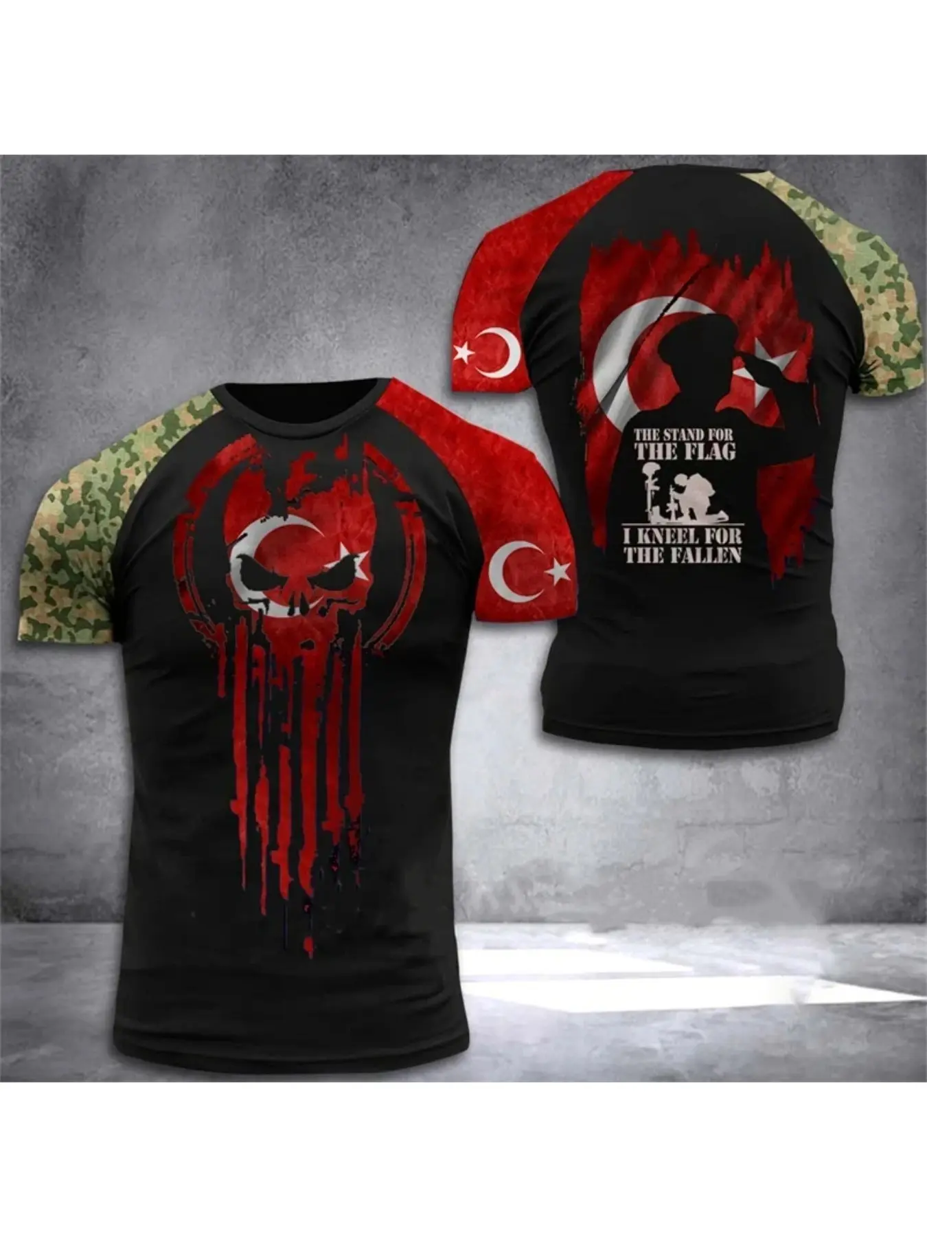 Turkey Flag Men's T-shirts Forest Camouflage Print Clothing Ropa Hombre Summer O-neck Oversized Fashion Short Sleeve Male Tops