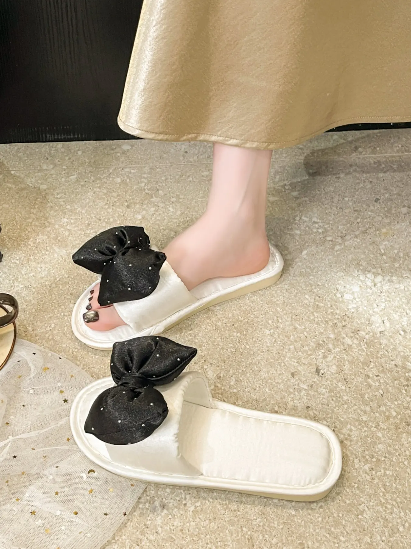 Fashion Soft Sole Comfortable Slippers, Bow Decoration, Indoor & Outdoor Use, Textile Upper, Tpu Sole, Casual Style