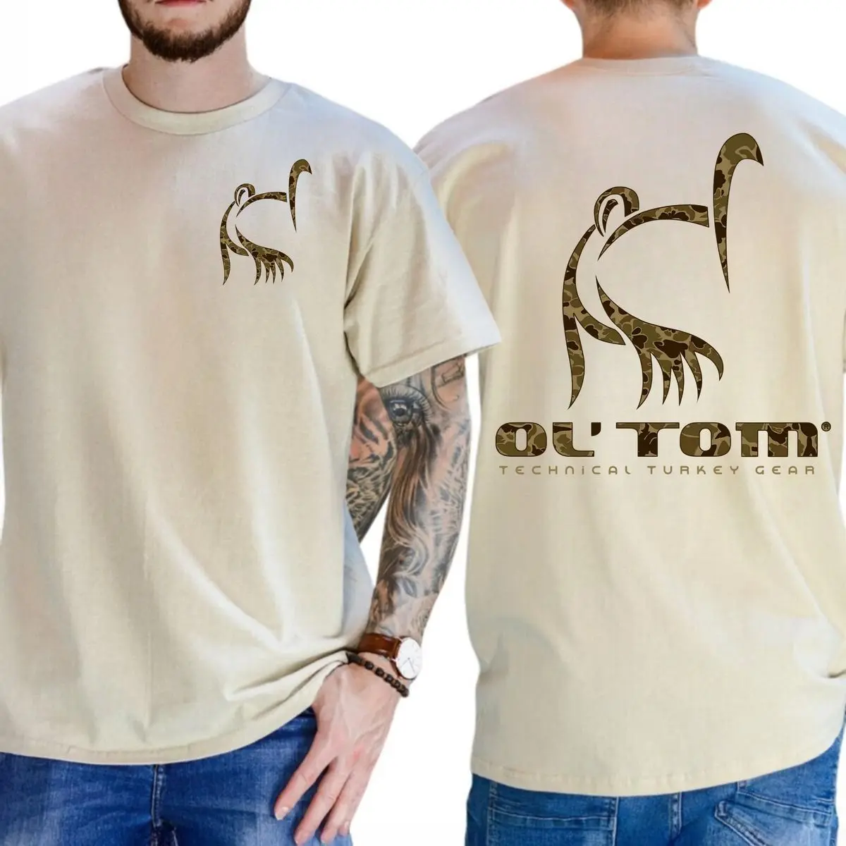 Camo Turkey Hunting T Shirt | Small Front Chest Logo With Large Back Graphic Design | Outdoor Field Season Camp Wear Tee | Gift For Turkey Hunter Dad Unisex Casual Graphic T Shirt
