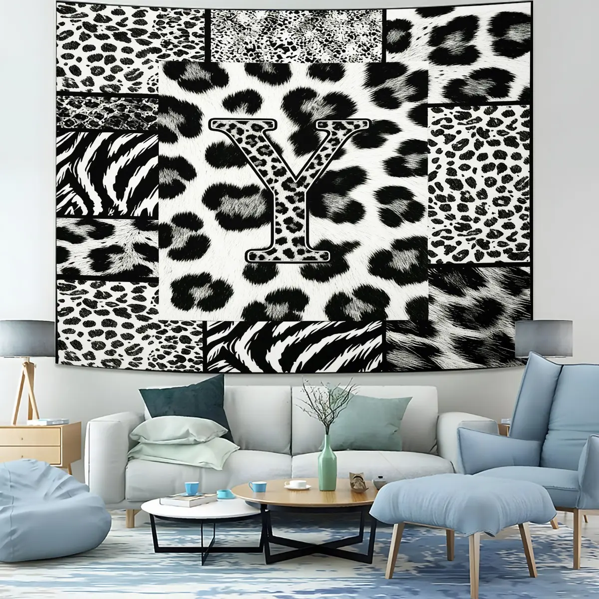 Personalized Initial Wall Tapestry, Retro Leopard Print Patchwork, Easy Care Good Shading, Suitable for Living Room Rental Wall Decor
