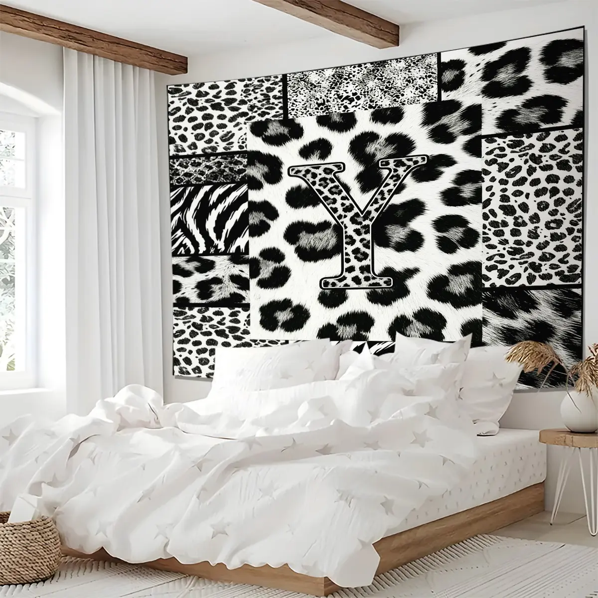 5. Personalized Initial Wall Tapestry, Retro Leopard Print Patchwork, Easy Care Good Shading, Suitable for Living Room Rental Wall Decor