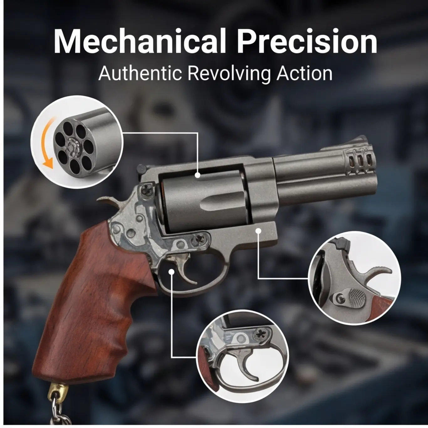 Y2K 1:3 Mini M-500-A1 Pistol Keychain Bag Charm Cool Collectible Key Ring Accessory