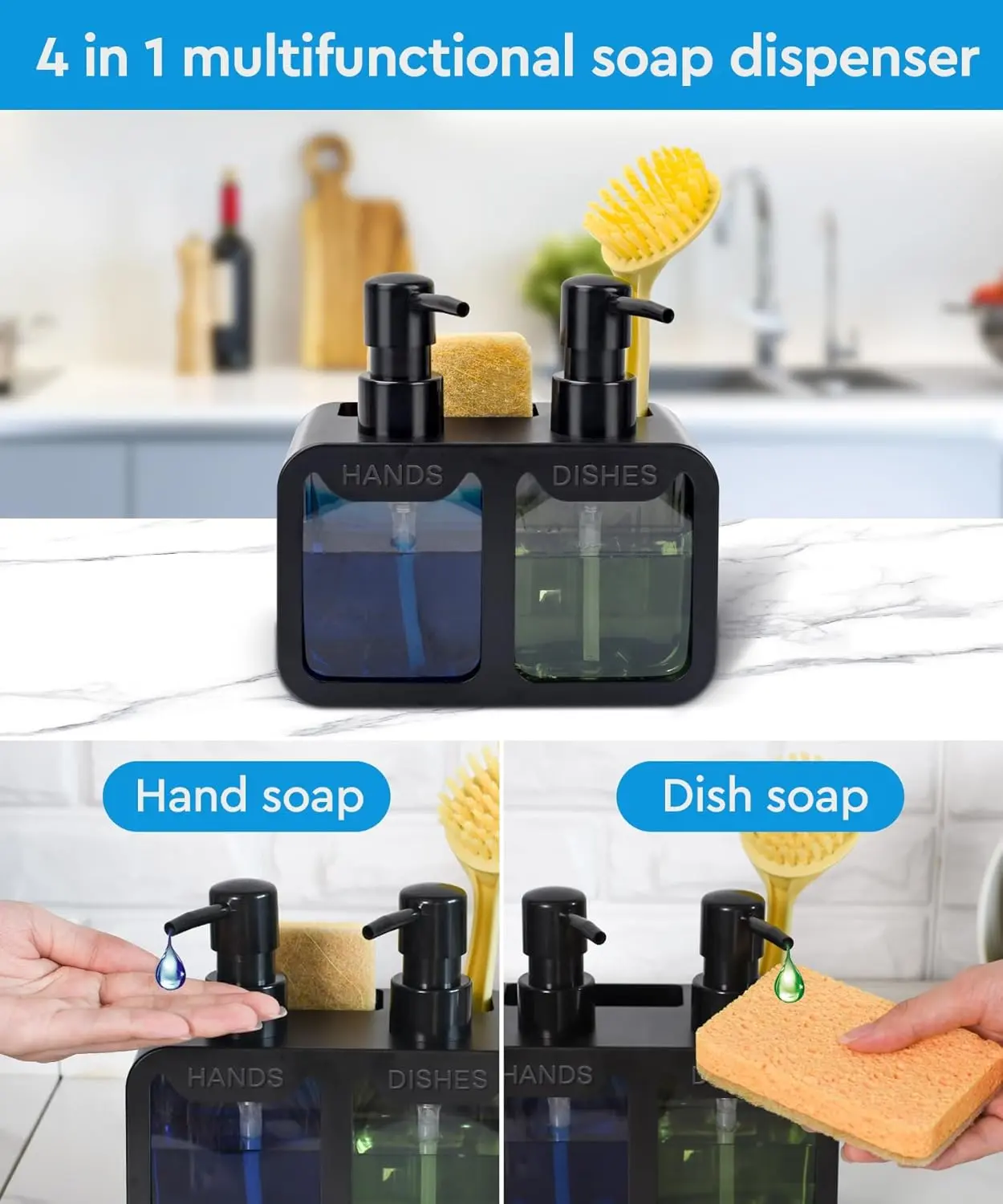 ·4-in-1 Multi-Functional DesignCombines soap dispensing, sponge storage, brush holder, and organizer in one unit