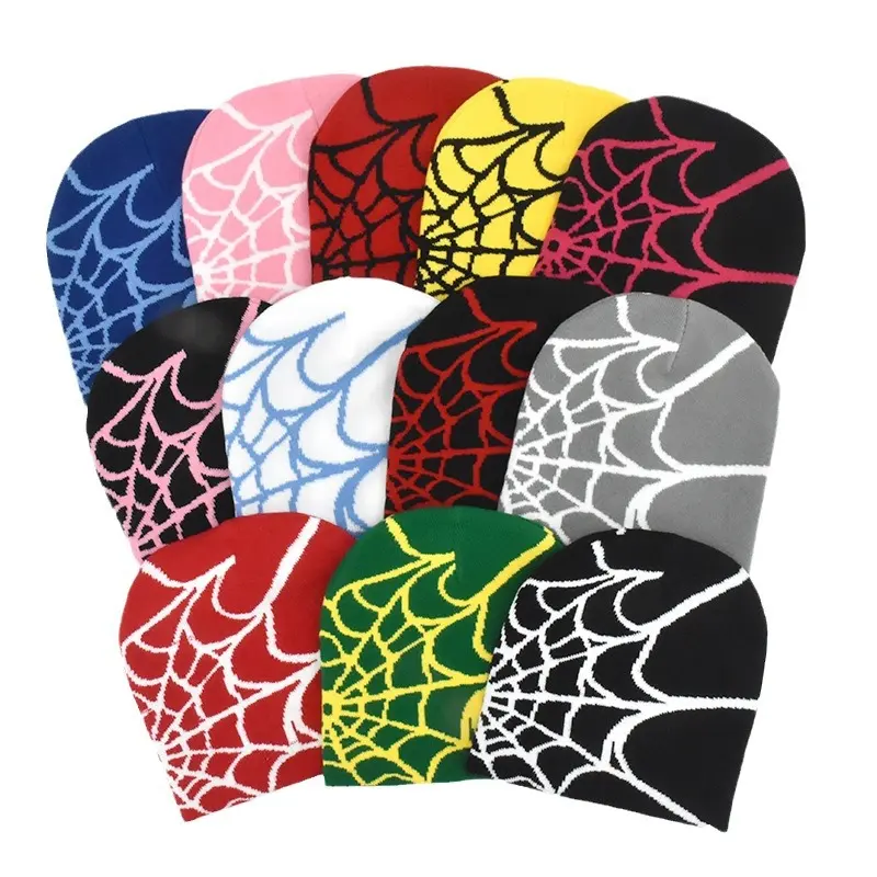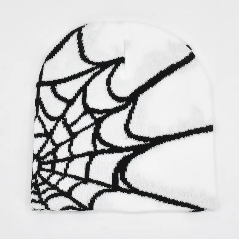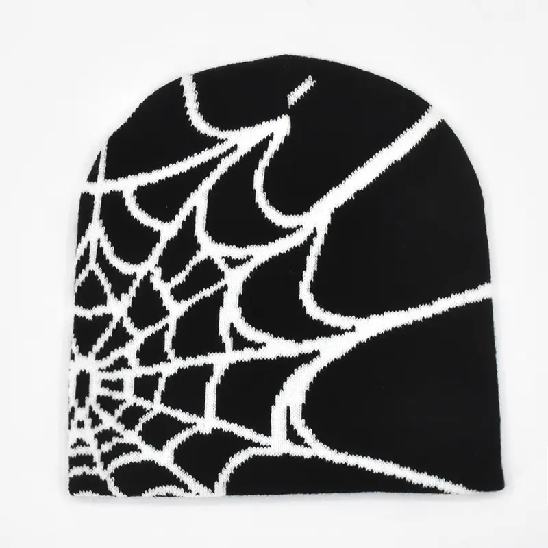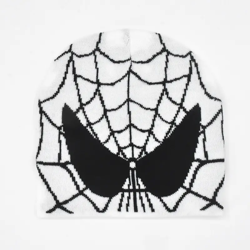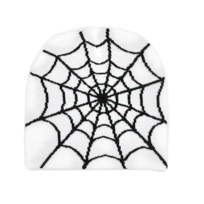 Dark Punk Streetwear Knit Beanie for Men Women, Spider Web Jacquard Design, Y2K Unisex Fall Winter Outdoor Cycling Hat, Warm Thermal Skull Cap for Urban Hip Hop Style