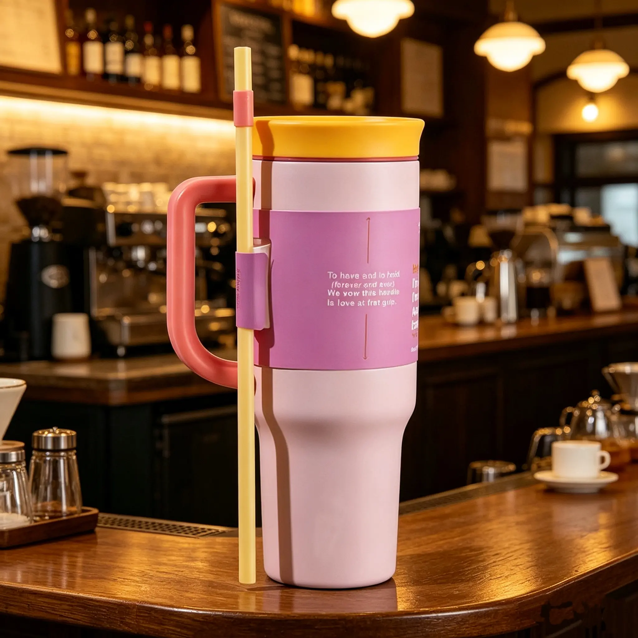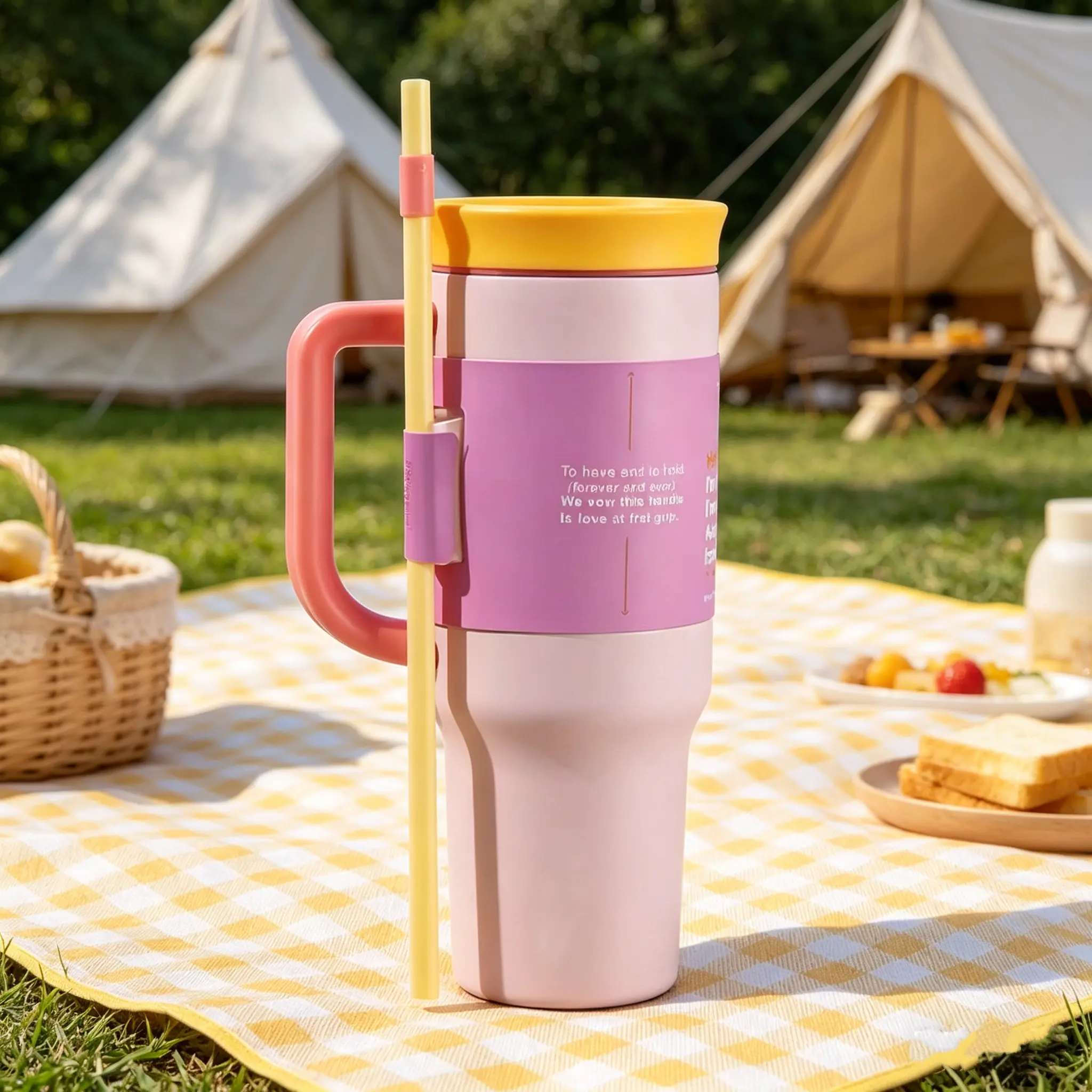 Ideal for travel, this 40oz tumbler is portable and reusable. It's a stylish flask that keeps your drinks insulated. The pastel colors and cute design make it a fashionable choice for everyday use. 🚗