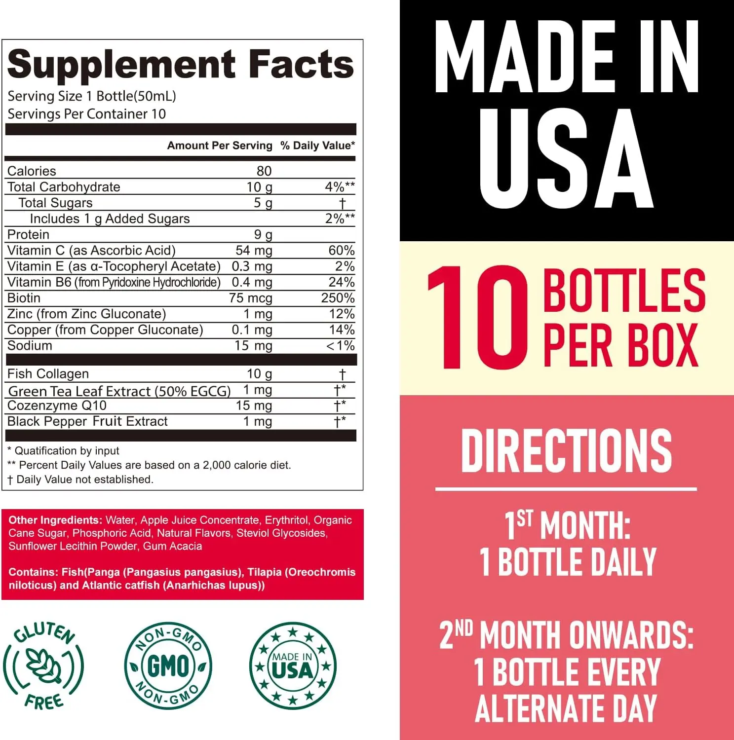 ·133% Higher Absorption than Others: Features patented liposome technology to boost bioavailability by 133% (Made using technology covered by U.S. Patent No. 11,497,728 B2 (used under license). Each 50mL serving delivers 10000mg marine fish collagen peptides under 1000Da for direct intestinal absorption, more effective than common liquid collagen, collagen powder, pills or capsules.