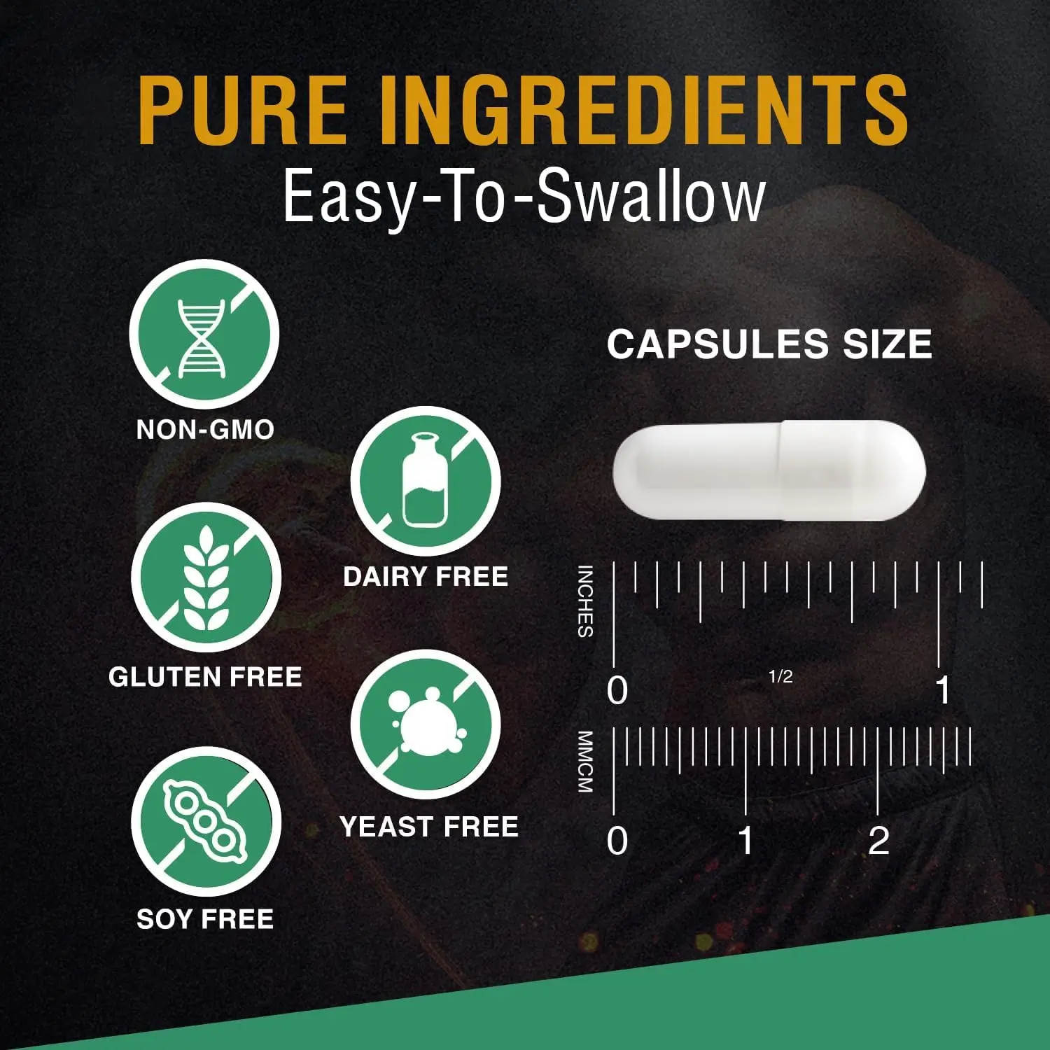 ·Energy and Endurance: Creatine monohydrate powder in our capsules boosts energy to your muscles, allowing you to have more endurance during your workouts. This means you can push harder and longer, maximizing your performance and results.