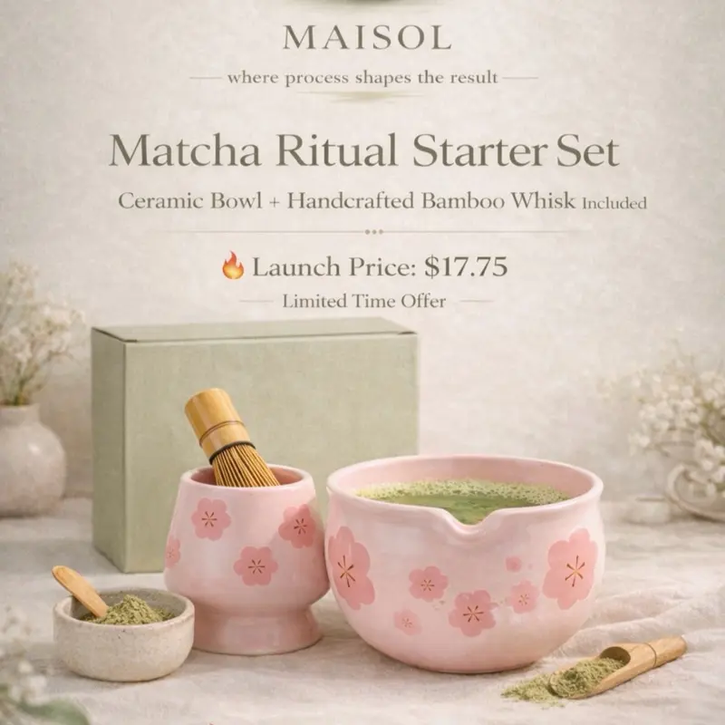 The MAISOL Matcha Ritual Starter Set is designed for those who want to enjoy authentic matcha in a simple, beautiful way. Whether you’re a beginner or a matcha lover, this set gives you everything you need to make smooth, creamy matcha every day💚🍵