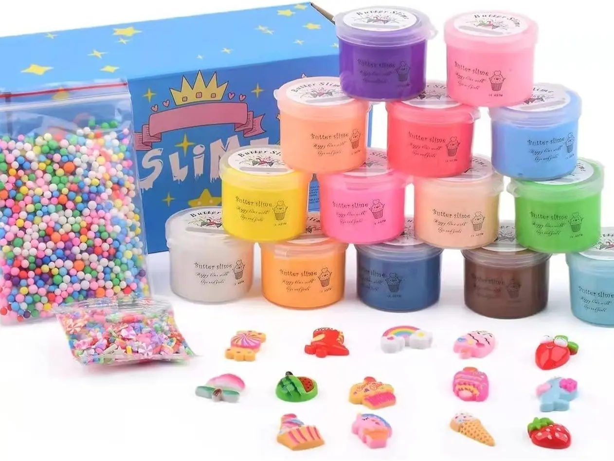 ·Package : (14*30ml) 14 Pack Butter Slime Includes Blue, Yellow, Purple Pink Slime,Slime Charms, It is Children's favorite.