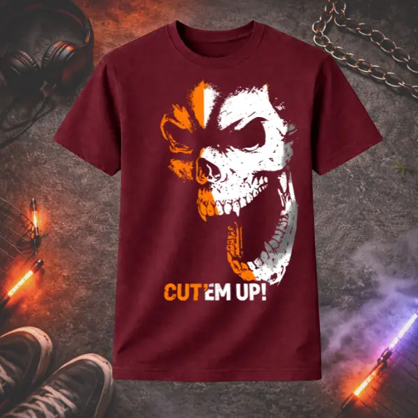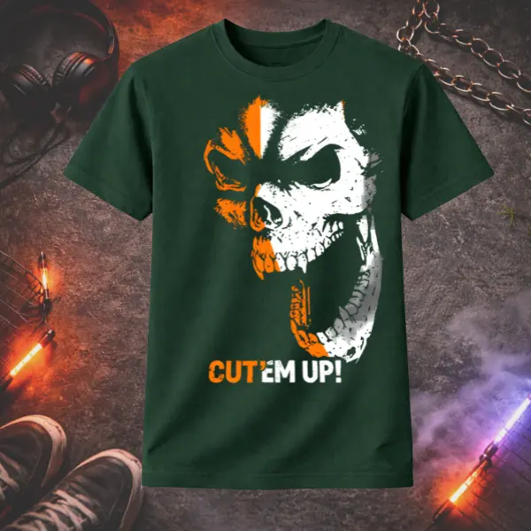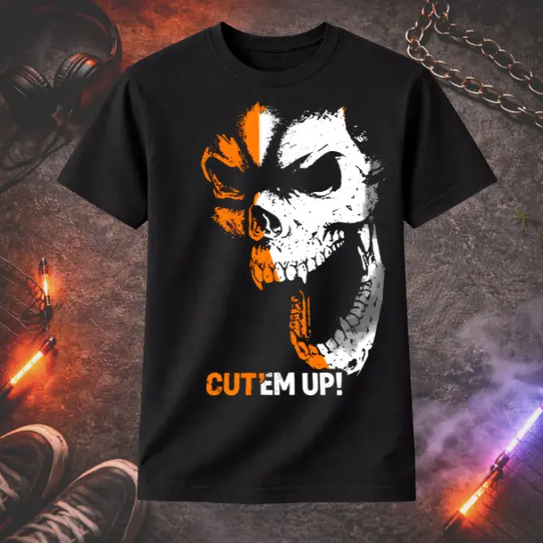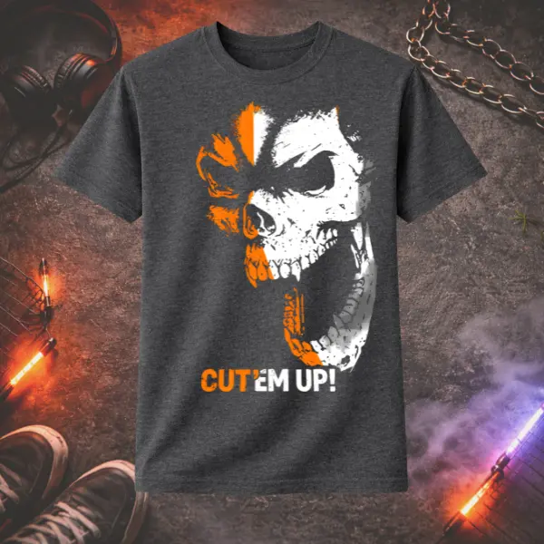 Skull Graphic T-Shirt – Cut Em Up Tee | Edgy Streetwear Shirt | Gothic Skull Print | Dark Aesthetic Gift for Men & Women | Unisex Tee | Ms. Lauren Charles Design
