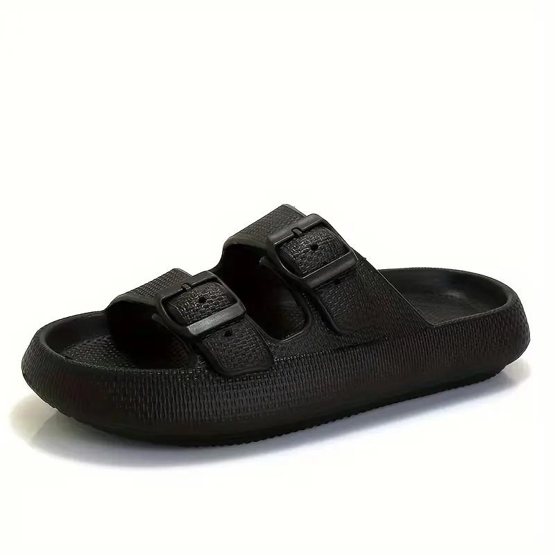 ·- Dual buckles fine-tune the straps so these pillow slides stay secure without rubbing, comfortably fitting wide or narrow feet