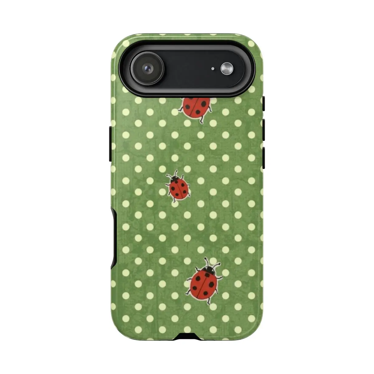 Floral Polka Dot Cartoon Bug Pattern: This phone case features a charming floral polka dot cartoon bug pattern.Perfect for adding a touch of kawaii minimal design to your device.🐞