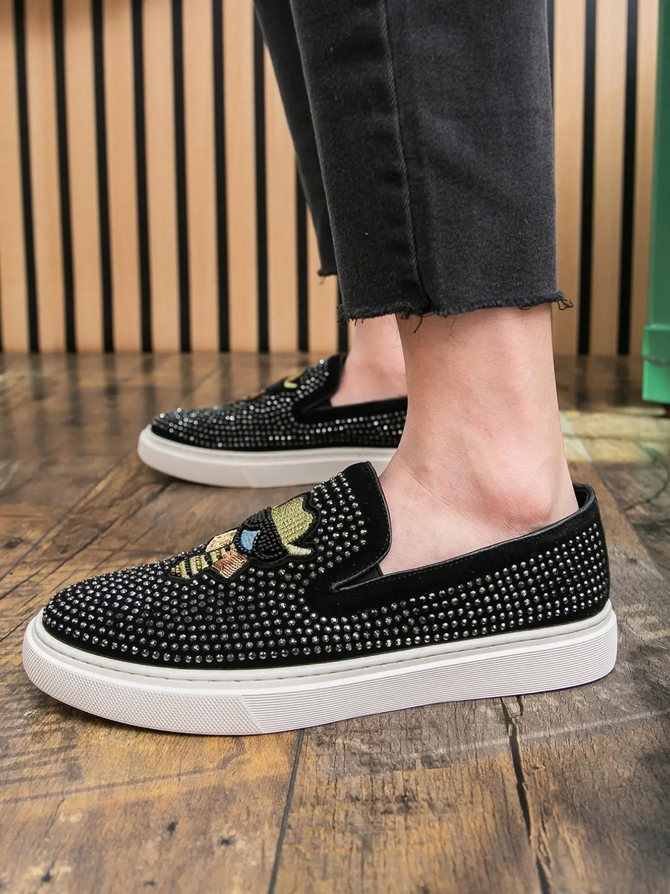 5. Men's Fashion Trendy Shoes, High-Quality Crystal Brick Cartoon Pattern, Daily Wear, Business Casual, Night Club, Driving, Slip-On Loafers