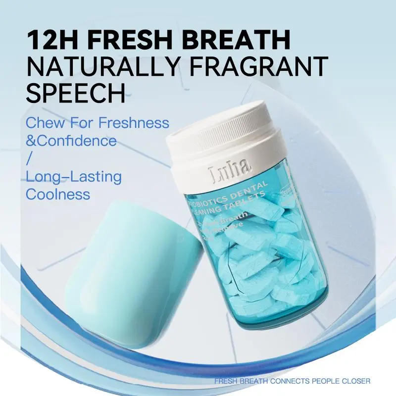 Probiotic Solid Toothpaste contains pearl powder, cleanses the mouth, whitens teeth, and provides long-lasting fresh breath. Convenient for travel and everyday use. Fluoride-free and environmentally friendly.