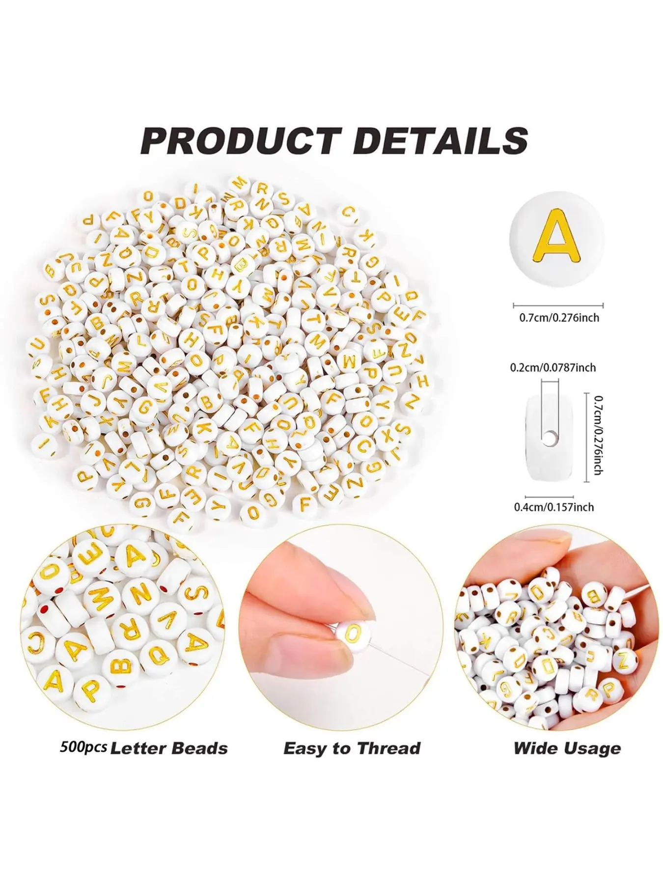 500 Acrylic Round 7mm Letter Beads Set, DIY Jewelry Making, Ideal for Bracelets, Holiday Gifts, Keychains, Craft Projects